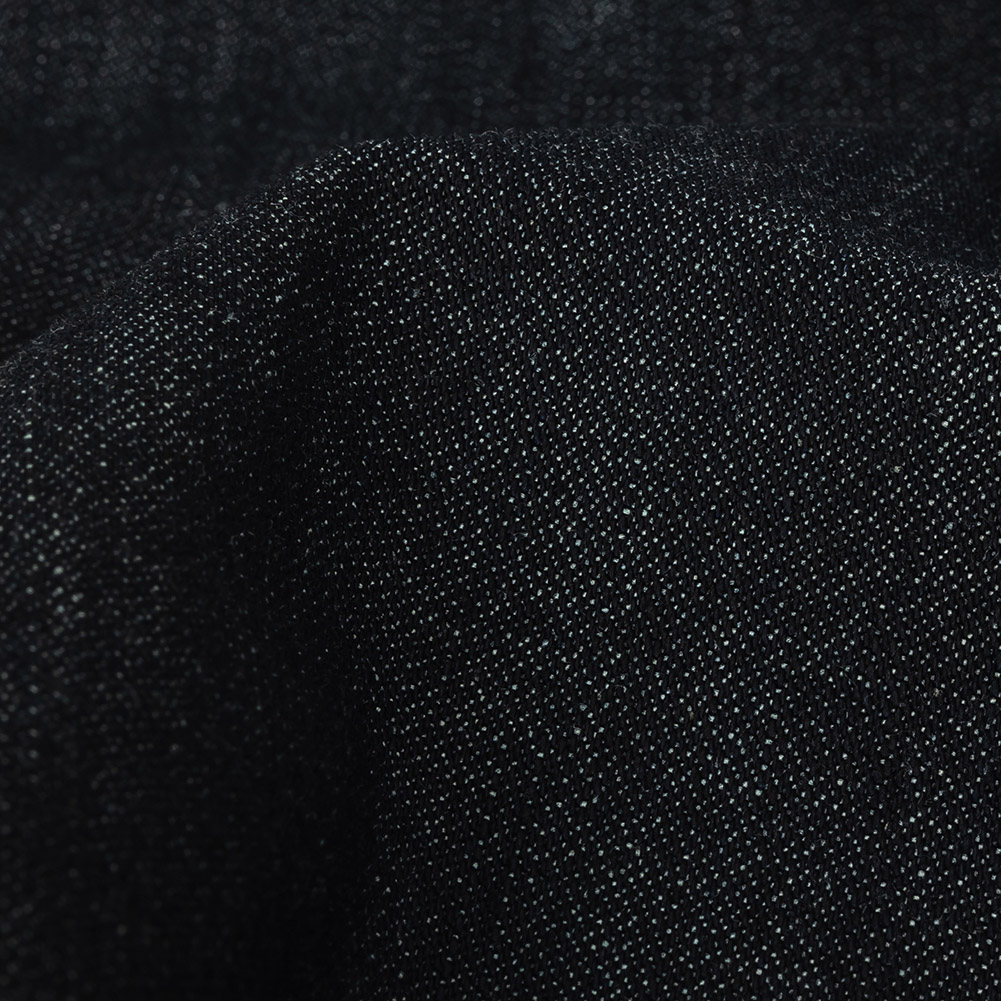 Let the deep indigo hues of this Blue Graphite Cotton Denim draw you in! Dark blue, almost black on the face, this denim is composed of a colored warp and white weft, so that the reverse is much lighter.