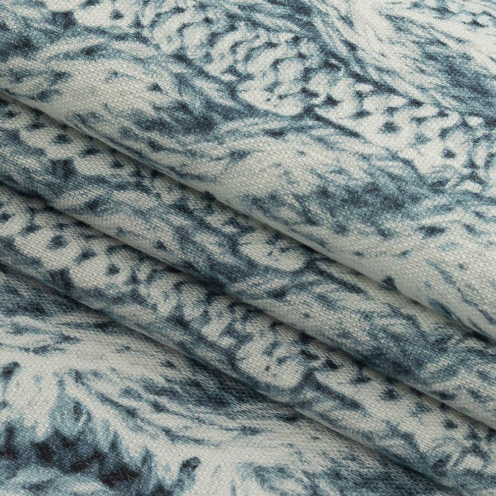 Lose yourself in a haze of high fashion with this Blue Haze and Flint Stone Cable Knit Printed Stretch Linen and Rayon Woven! A print closely resembling an intricate cable-knit sweater in varying hues of blue and white creates a captivating three-dimensional appearance across this linen and rayon woven. Derived from the flax plant then spun into linen fiber, this woven is not only breathable but naturally strong too. A soft hand partnered with a crisp, woven texture merges with a flexible, semi-billowing drape. Medium in weight, this fashion fabric is an ideal choice for long, flowing dresses, mid-length skirts that sit at one's natural waist, roomy t-shirt dresses, as well as countless others. With ample weft-wise stretch, fashion tailored garments and fitted silhouettes with ease. Boasting a slightly translucent construction in parts, a lining is optional for increased opacity.