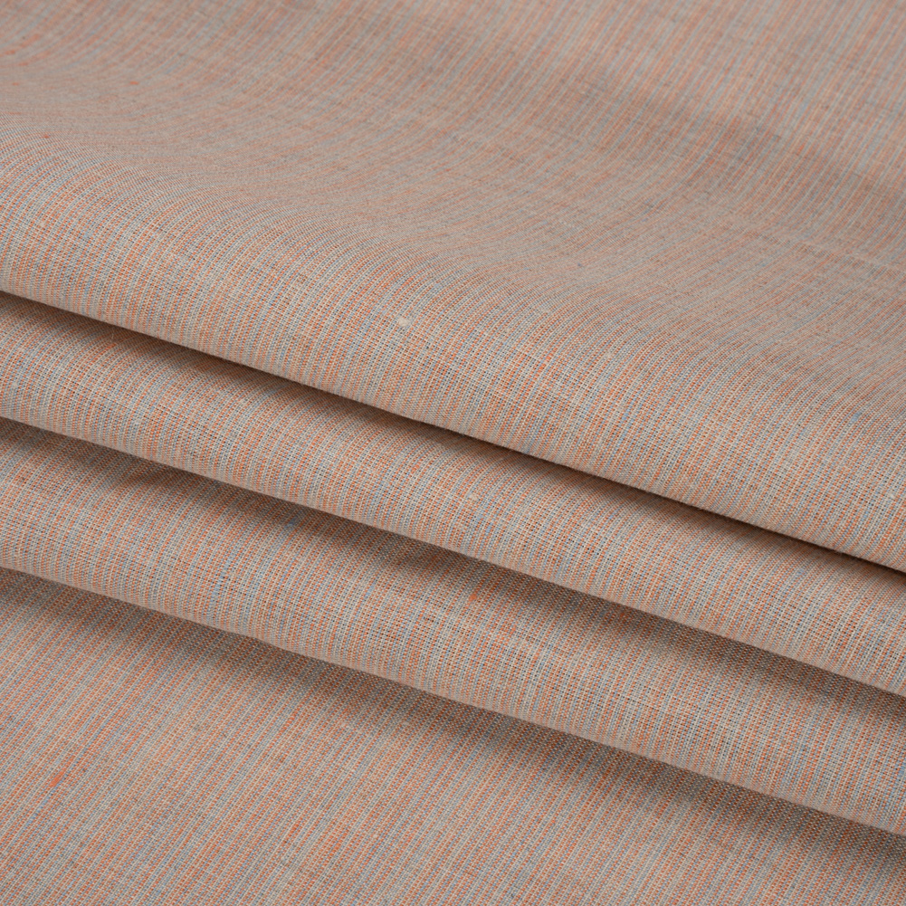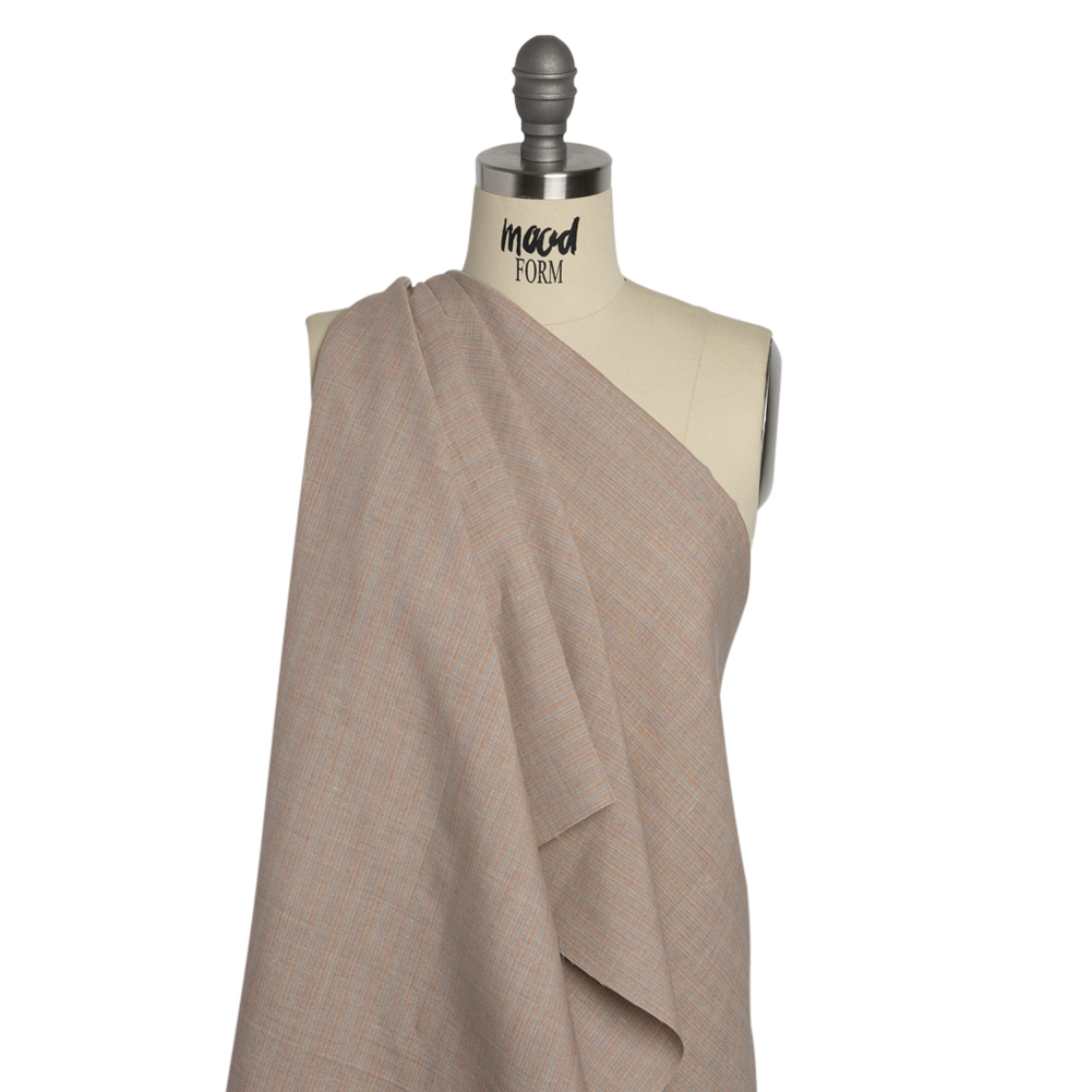 Create year-round wardrobe staples with this Blue, Red and Yellow Striated Lightweight Linen Woven! Thin red, tan, and blue threads create a unique and interesting striated face. With the dry, pebbled hand and a supple drape, look to fashion sweet mini skirts, preppy suit jackets, comfy paperbag pants, and more! Naturally moisture-wicking and lightweight, linen will not cower from the heat—quick absorption of water allows for the face to feel cool against your skin in any climate. As it is extremely transparent, a lining may be desired depending on the project.