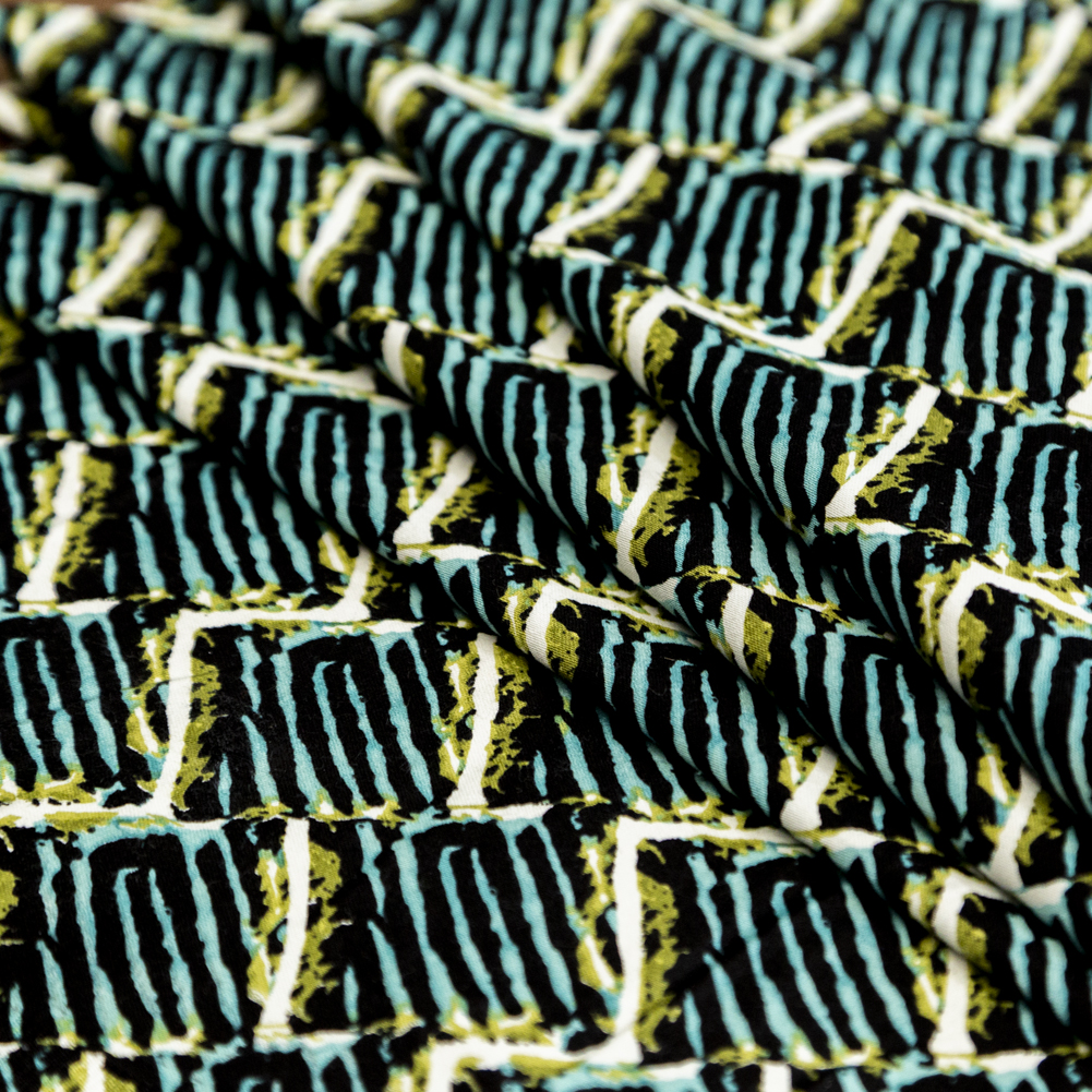 Blue Tiger Striped Diamond Printed Stretch Cotton Twill