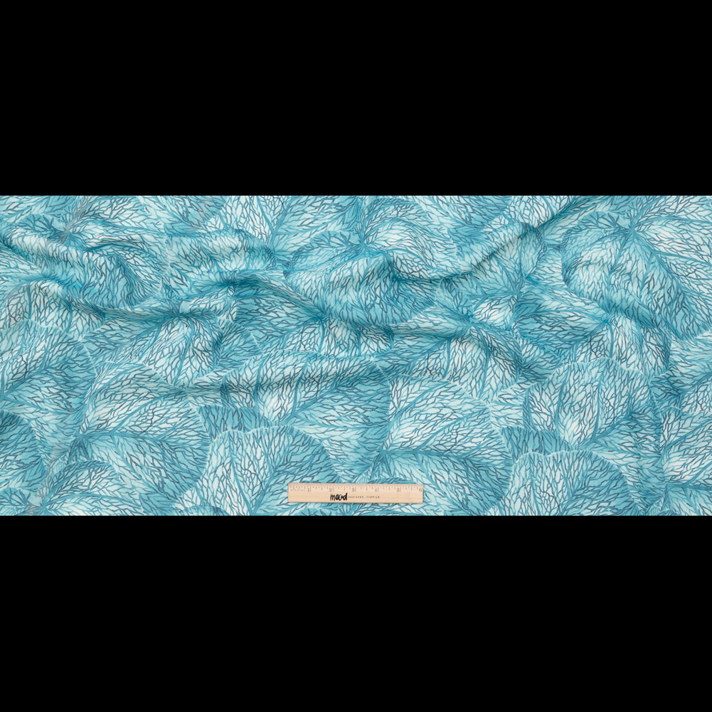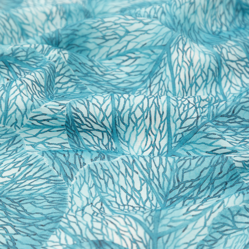 Blue Tropical Leaves Printed Woven