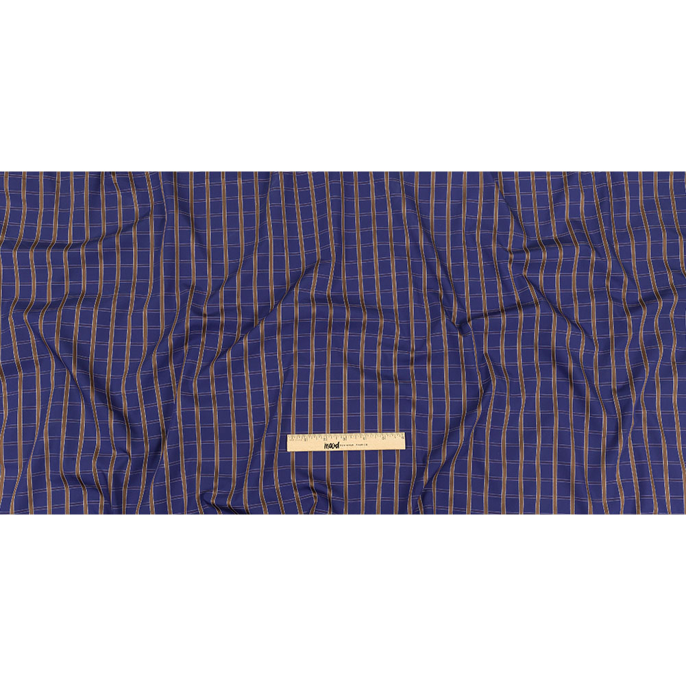 Mood's Blueprint and Brown Plaid Cotton Shirting with Satin-Faced Stripes is the blueprint for chic cottons! Faded brown stripes intersect lustrous, satin-faced stripes of the same color, all over a cobalt blue ground. Crisp in hand with a satisfying snap, shirts and shirt-dresses as well as gathered skirts and crop tops are optimal applications for this material. Opaque, a lining is not of necessity for top-weight applications.
