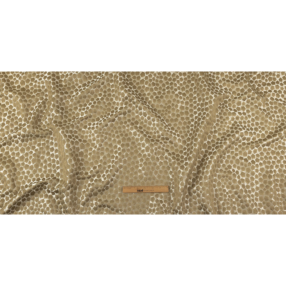 For a glamorous twist on mid-century modern design, try this British Imported Gold Satin-Faced Pentagonal Drapery Jacquard! Playful polygons recall giraffe spots and other natural geometry, seen here in shiny silver and matte yellow-beige shades. With a dynamic texture and voluminous drape, statement drapes in living rooms and bedrooms are a must. Somewhat translucent, a lining may add opacity for certain projects but is not always necessary.MoodEarth Verified: This fabric is made with recycled materials, which are made from post-consumer waste that is transformed into raw fibers, producing a high-quality, eco-friendly fabric. For more information on Mood's sustainability initiatives, check out MoodEarth here.