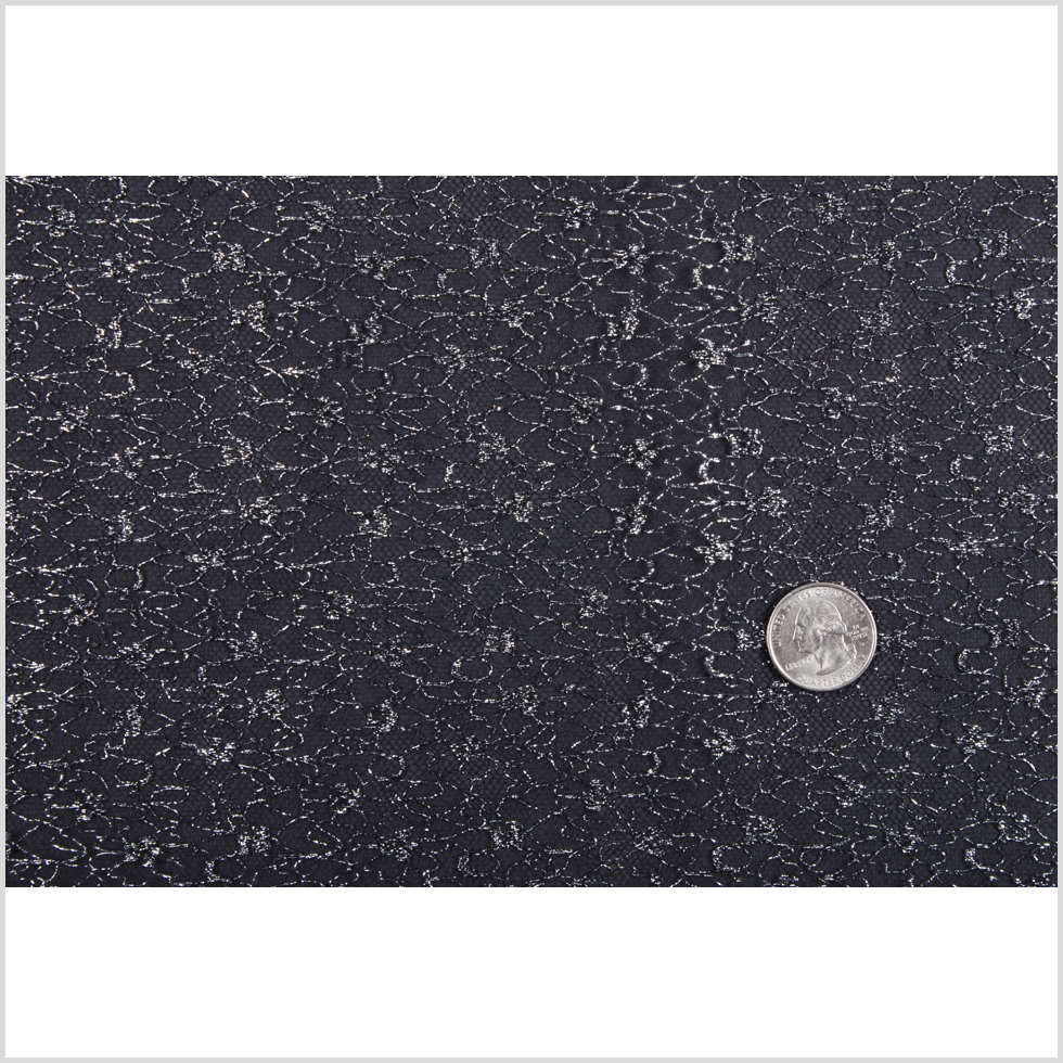 Sculpt incredible garments with our impeccable British Metallic Silver and Black Floral Tulle! Offering high rigidity, this loosely woven metallic wonder gifts an amazing amount of volume to your formal wear designs. Featuring Lurex® yarns (metallic threads) throughout the composition, a subtle floral pattern emerges, also showcasing a lustrous sheen. Stiff and certainly crisp, incorporating a high-quality lining in addition to your featured fabric is a must—for both comfortability and opacity purposes. Utilizing this tulle crinoline as an overlay, construct evening silhouettes such as bulbous ball gowns, cocktail attire, and more. For seemingly seamless looks, check out our invisible thread, too.