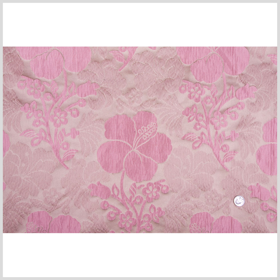 This is a polyester high relief floral brocade in bronze and dusted pink. Medium weight, good for drapes.