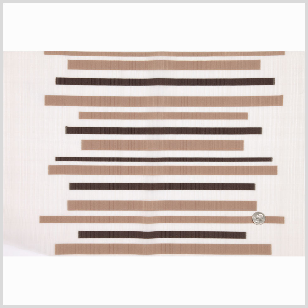 This is a sheer poly organza with a woven ribbon stripe. Double width, ideal for drapery.