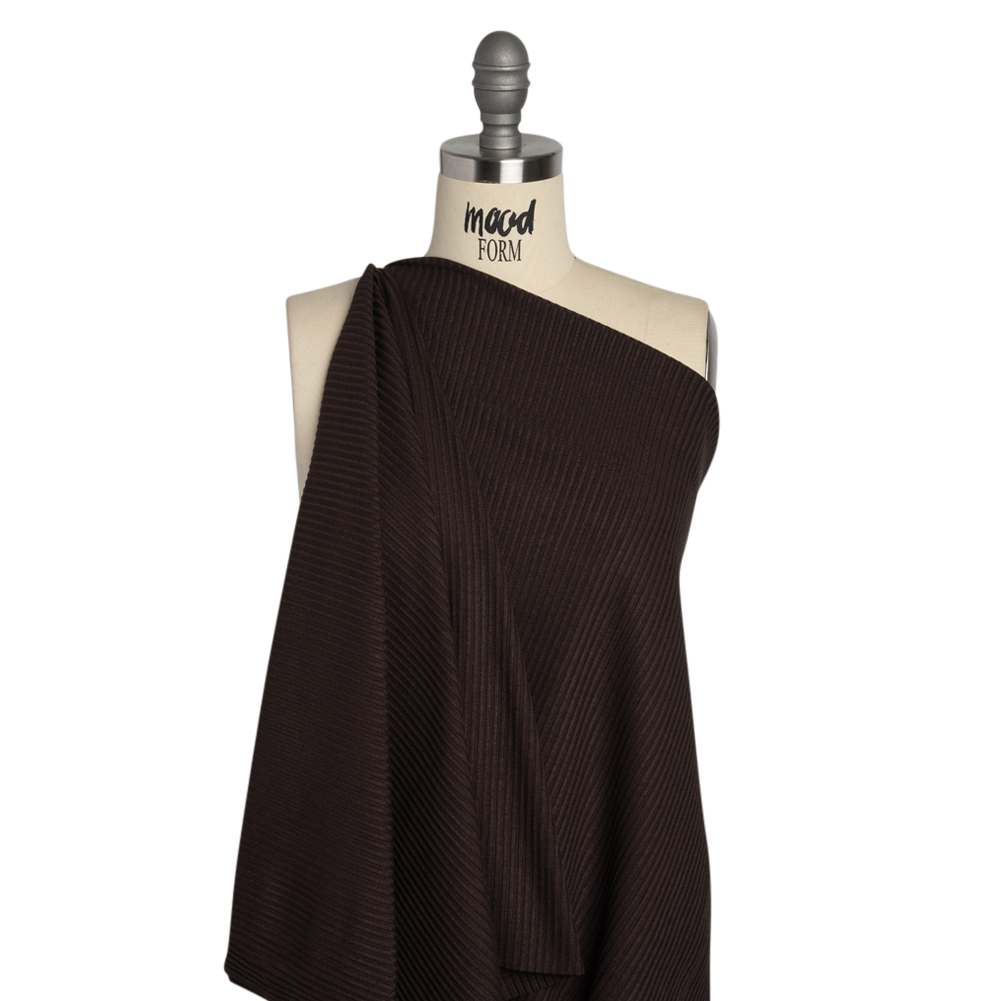 There's no real way to stretch this Brown 6x6 Stretch Rib Knit beyond its ability! The soft ridged hand and semi-fluid drape combine with a handsome amount of four-way stretch to create a uniquely tangible and staggeringly subtle medium for a variety of pieces. Transform this textile into slinky bodycon dresses, classic pencil skirts, form-fitting tops, and more! We suggest creating an understated yet elegant bodycon dress with a tulip skirt hemline. Entirely opaque in construction, a lining is not necessary but may be used if additional structure is desired.
