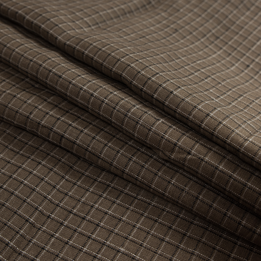 Brown, Beige and Black Checkered Linen Woven
