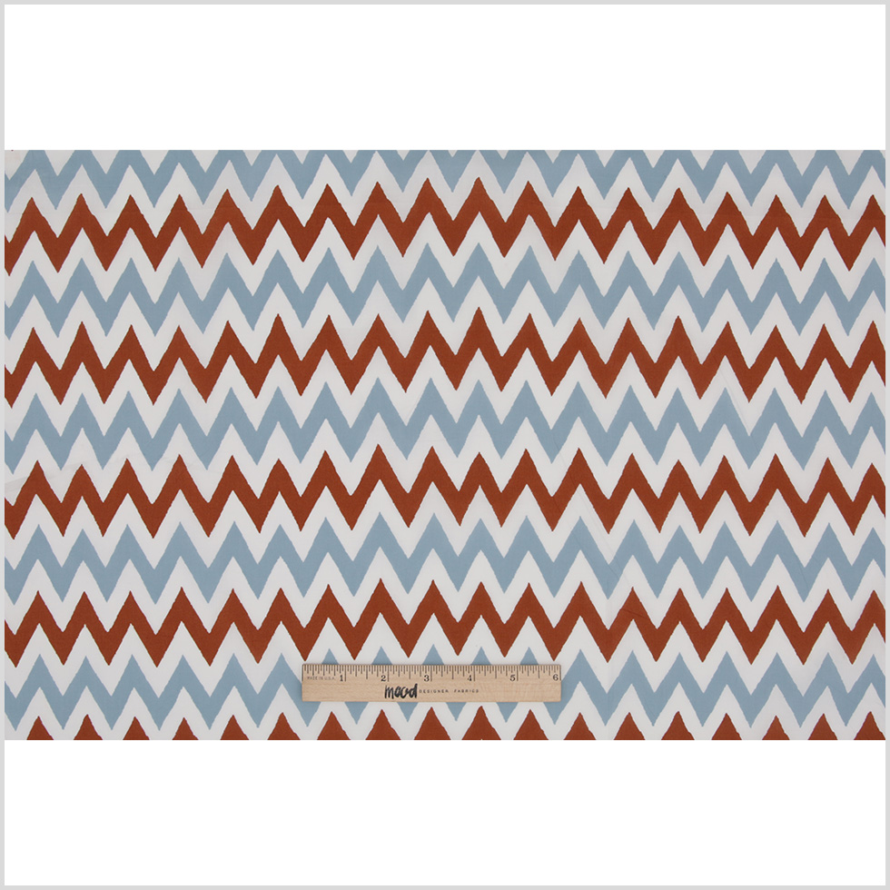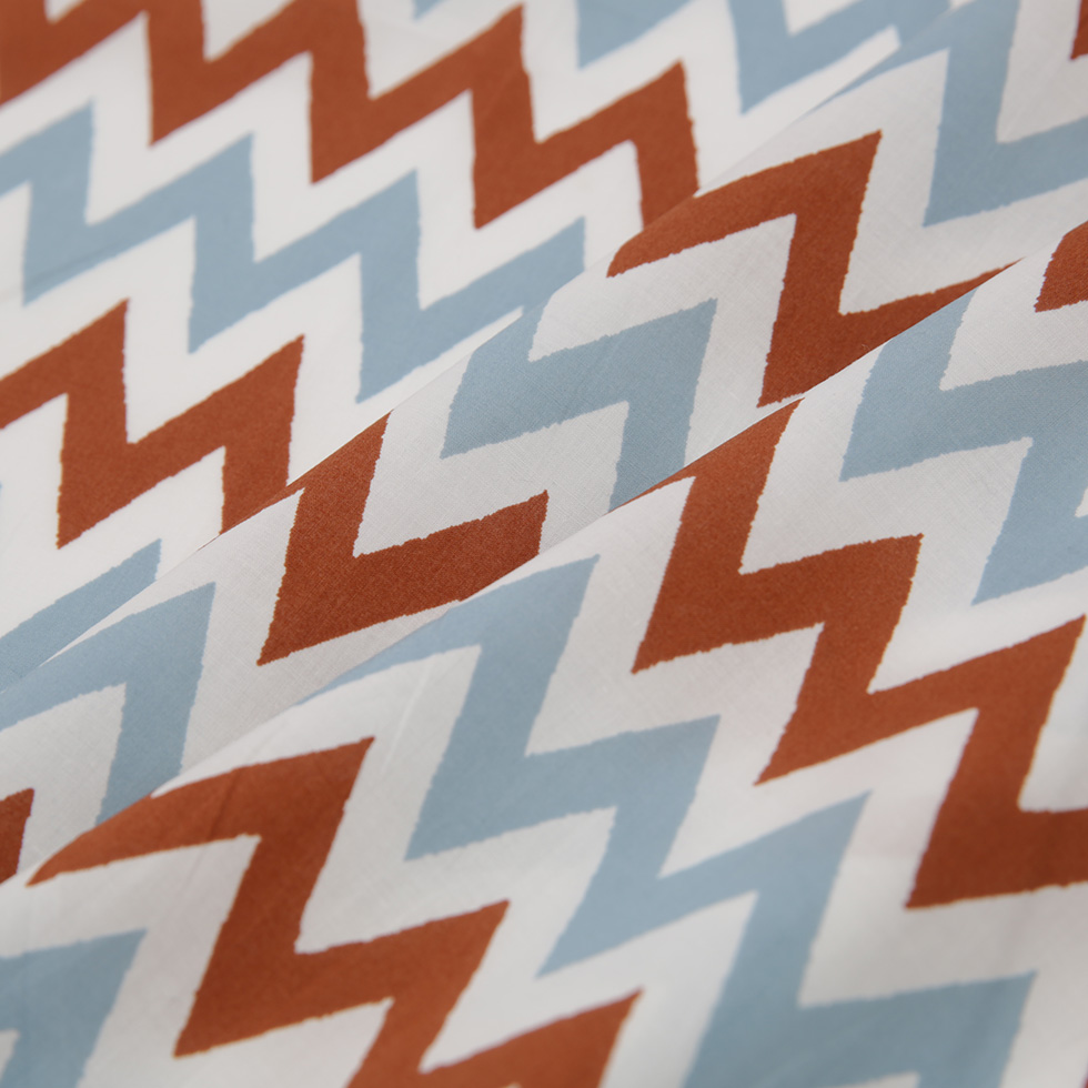 Brown/Blue/White Zig-Zag Printed Cotton Poplin