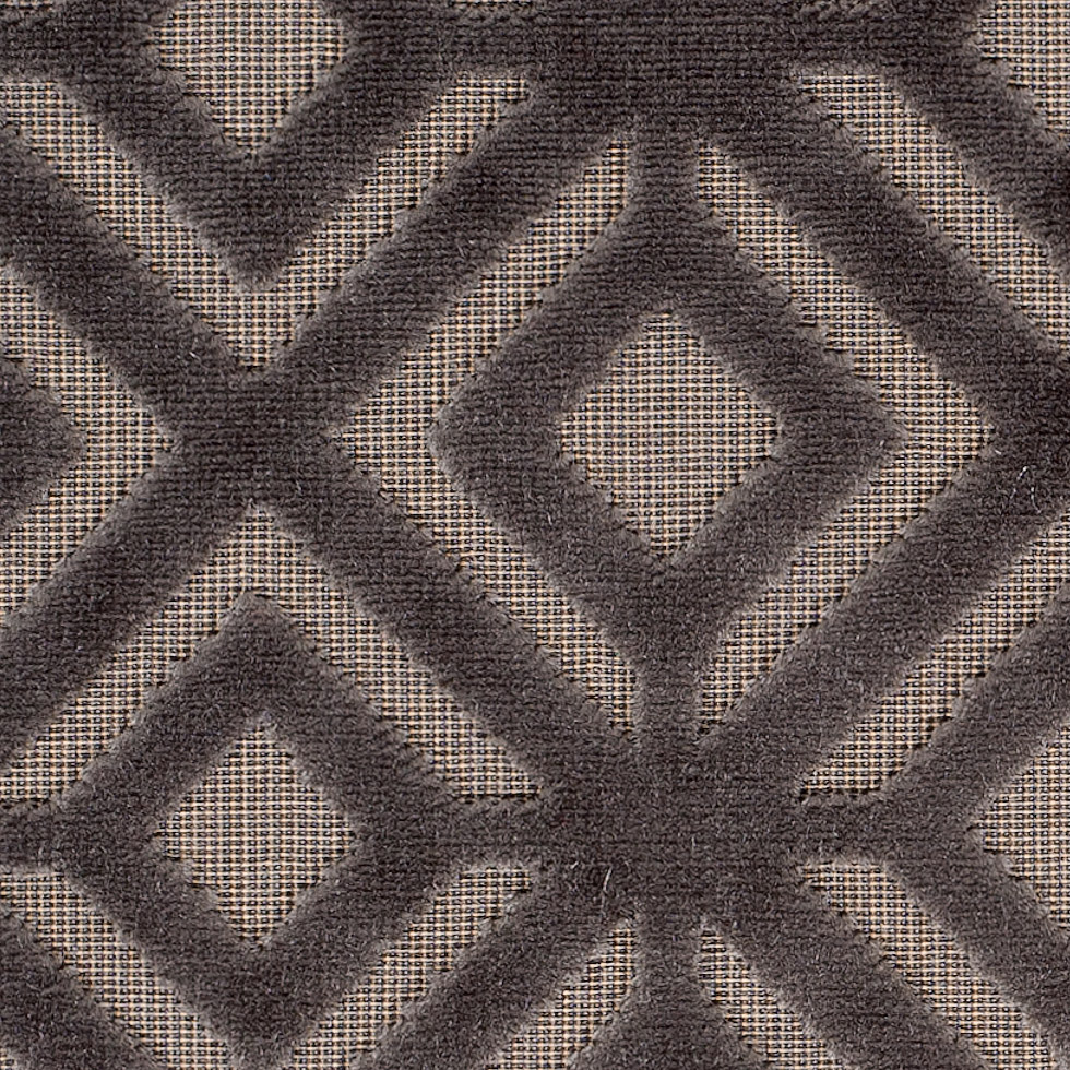 A timeless home decor fabric of geometric cut velvet. Brown.