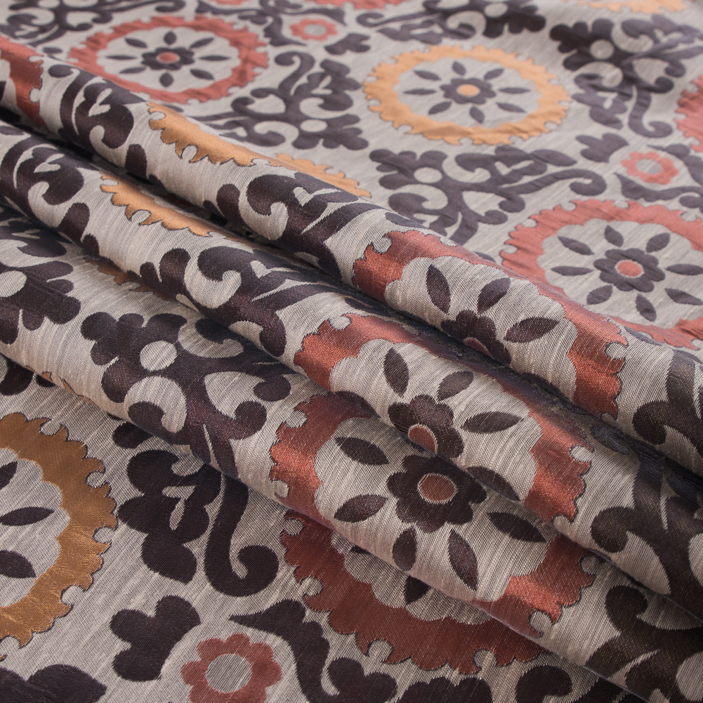Brilliantly woven for both textural and visual delight, here is a perplexing polyester and viscose brocade prefect for decorative and drapery applications.