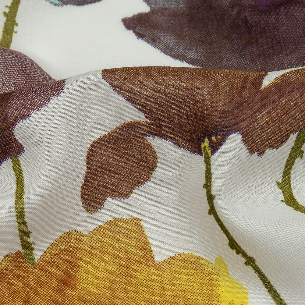 Brown, Olive and Ochre Painterly Blooms Cotton Lawn