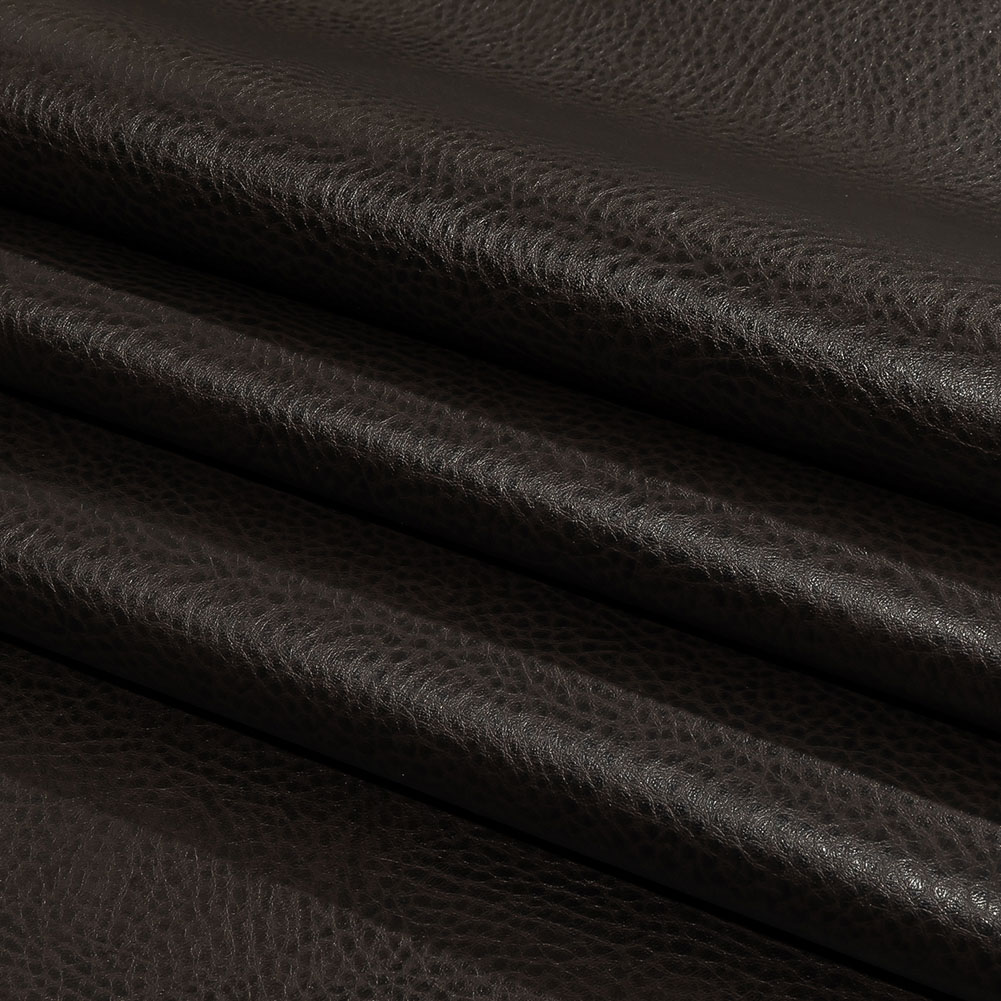 One taste of this chocolate-hued Brown Pebbled Faux Leather with a Woven Backing and you'll be smitten! Slick with a slightly textured hand, this dark black faux leather is perfect for a modern design layout. Offering a voluminous drape with a lighter weight, it also features a woven backing for durability and structure. Without stretch, it's the ultimate choice for upholstery applications such as couches, office chairs, comfy recliners for reading nooks, and ottomans! WARNING: Cancer and Reproductive Harm - www.P65Warnings.ca.gov.