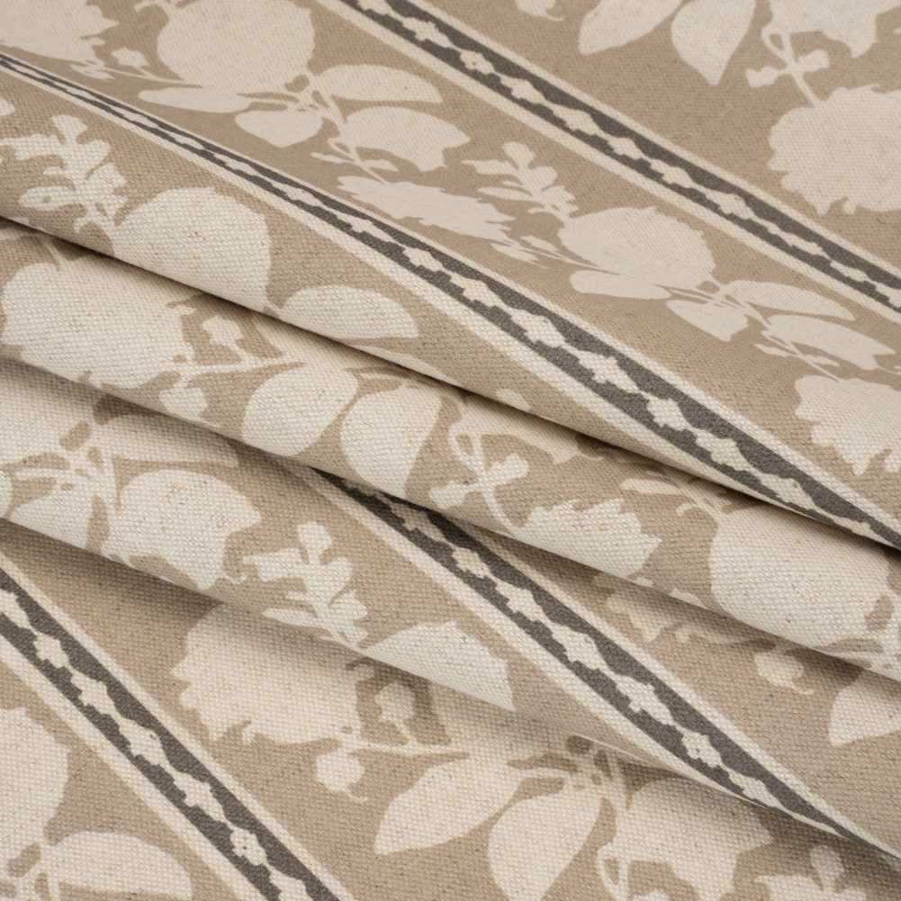 Brushed Cotton and Linen Canvas - Jute Floral Silhouette Stripes - British Imported