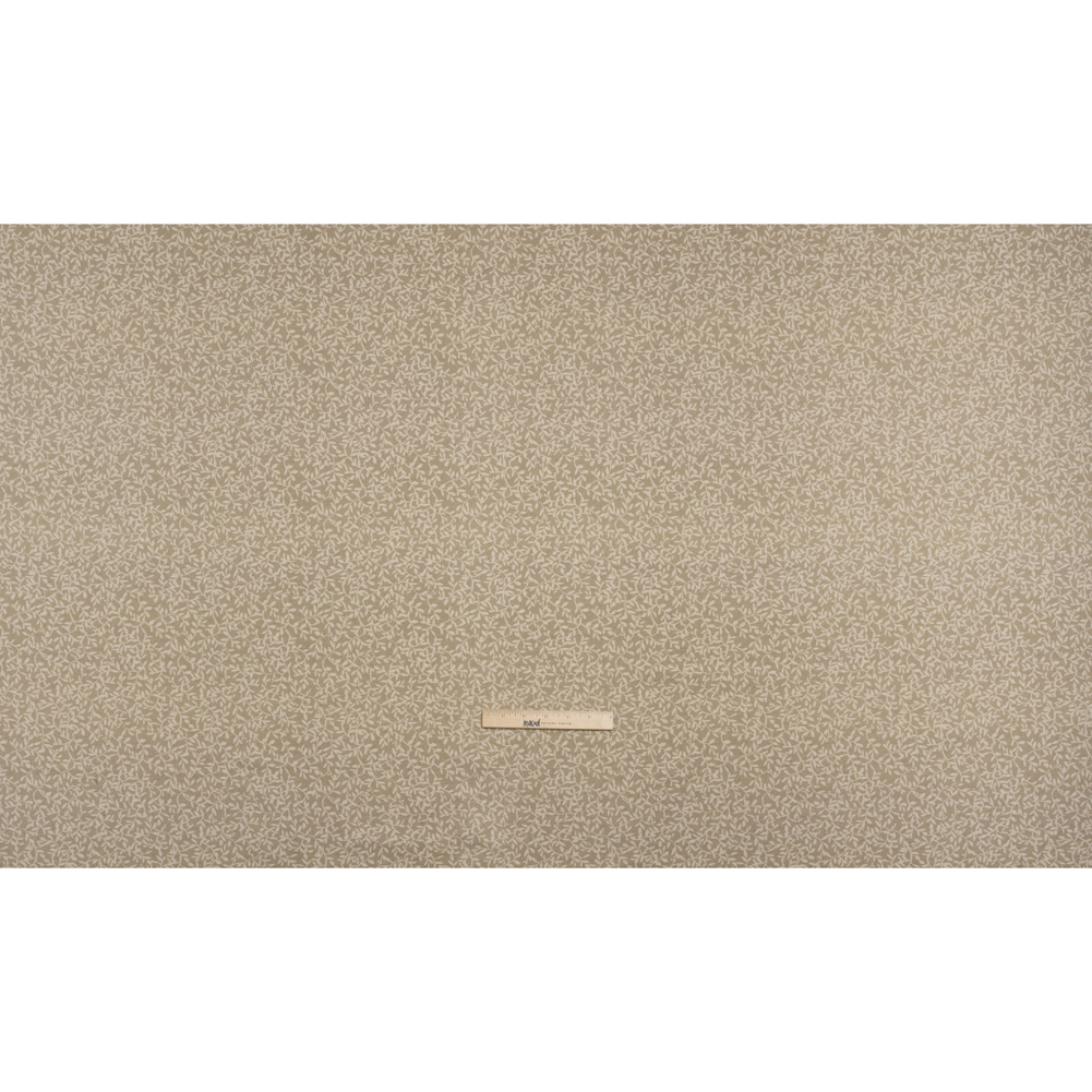With a blend of linen and cotton fibers, this Jute Little Vines Brushed Canvas offers a soft hand and semi-structured drape, while beige leafy vines cover the pale gray background.