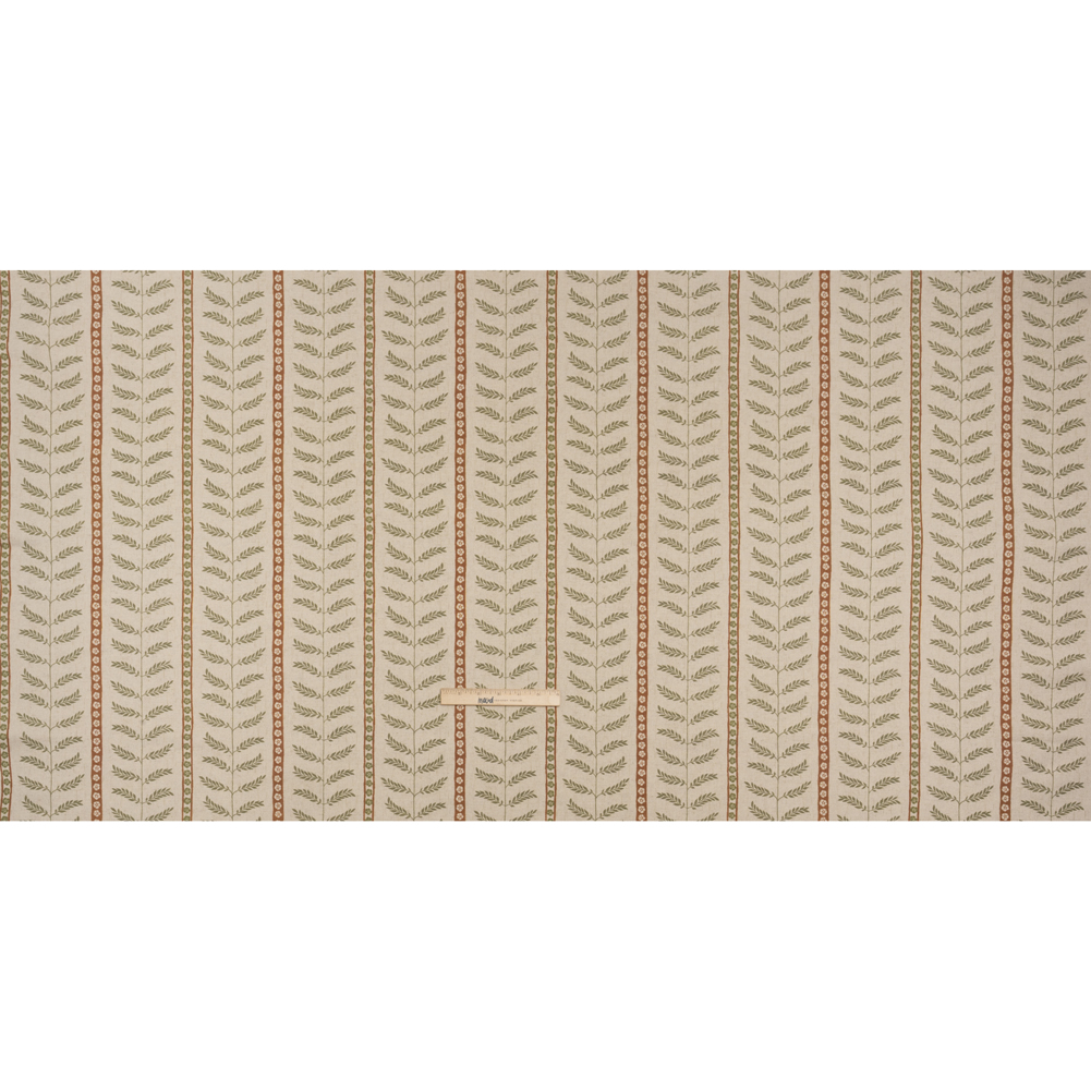 Brushed Cotton and Linen Canvas - Spice Fern Leaves and Flower Stripes - British Imported