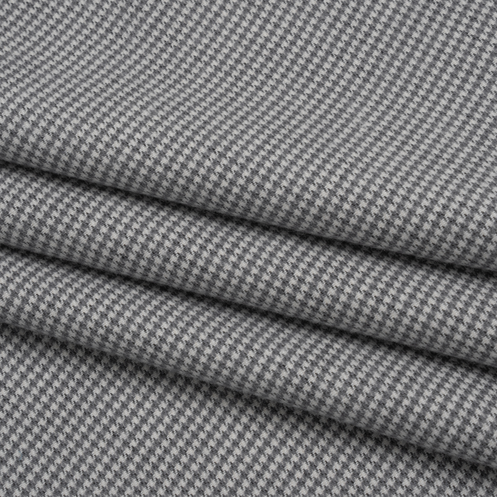 Comfort is the paramount purpose of this Gray and White Little Houndstooth Brushed Cotton Twill—featuring a super soft hand and supple drape.Suggested Projects: Pants, Skirts, Jackets, DressesContent: CottonStretch: NoneOpacity: Mostly OpaqueGray, dark gray, and off-white threads weave together in a classic little houndstooth pattern across this fabric. Soft, brushed, and inviting, this cotton twill combines a tactile weave with a slightly fuzzy hand. Its supple drape and cozy warmth make it ideal for wide-leg pants, comfy button-ups, structured jackets, and chic skirts—equally suited for a night out or a quiet day at home. Mostly opaque and incredibly comfy, no lining is needed for most applications.