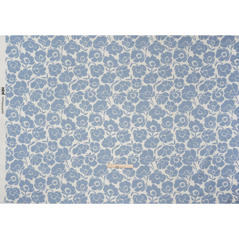 Brushed Cotton Woven - Blue and Off White Simple Poppies - Mood Exclusive Poppy Impressions Print