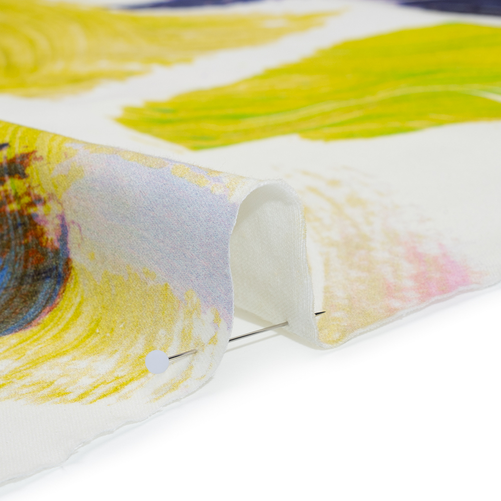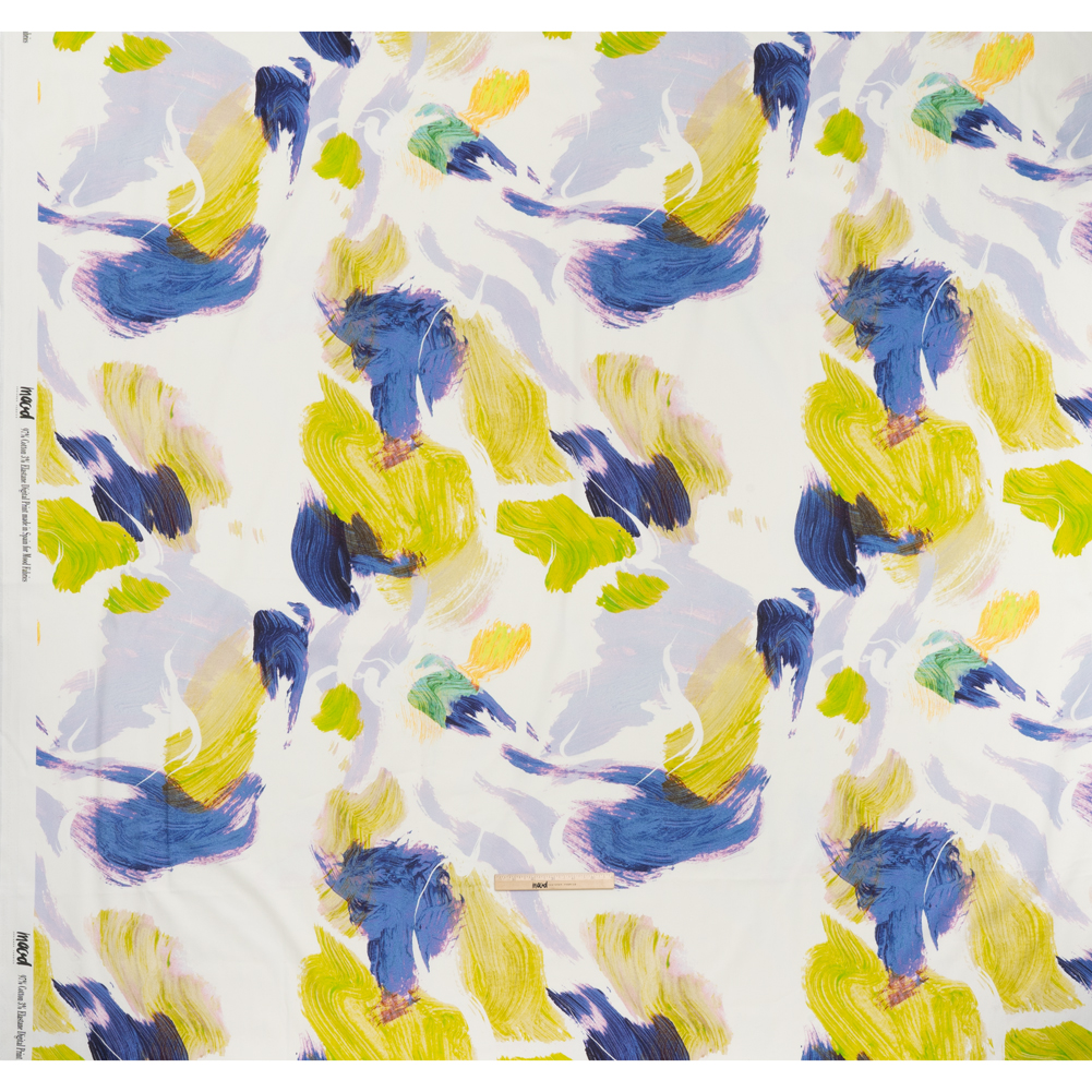 Your creative vision will know no bounds when working with this Chartreuse Mood Exclusive Color Study Brushed Cotton Woven—featuring a soft, smooth hand and malleable drape.Suggested Projects: Dresses, Pants, Skirts, JacketsContent: 97% Cotton, 3% ElastaneStretch: 10% WeftwiseOpacity: OpaqueDiscover a fresh palette and playful art style with this Color Study cotton woven. Against a white canvas, bold strokes of chartreuse, blue, and pale purple are painted with carefree abandon, inviting you to explore your creativity without limits. Brushed to bring out its soft, smooth fibers, this fabric is made for all-day comfort, whether you’re in the office or enjoying the sun. With a 10% stretch through the weft and a malleable drape, it moves with you while holding its shape for tailored looks. We envision chic cigarette pants, sheath dresses, lightweight blazers, and more! Opaque, a lining can be added for structure but is not required.