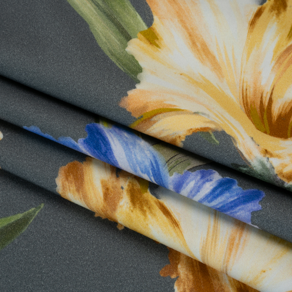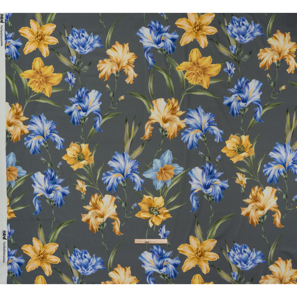 Ride the storm of inspiration towards your next design with this Gray Mood Exclusive Language of Lilies Brushed Cotton Woven—featuring a soft, smooth hand and malleable drape.Suggested Projects: Dresses, Pants, Skirts, JacketsContent: 97% Cotton, 3% ElastaneStretch: 10% WeftwiseOpacity: OpaqueBig lilies bloom in vivid hues of golden yellow and blue against a stormy gray sky, swaying gently as if whispering creative secrets to inspire your next masterpiece. Brushed to bring out its soft, smooth fibers, this fabric is made for all-day comfort, whether you’re in the office or enjoying the sun. With a 10% stretch through the weft and a malleable drape, it moves with you while holding its shape for tailored looks. We envision chic cigarette pants, sheath dresses, lightweight blazers, and more! Opaque, a lining can be added for structure but is not required.