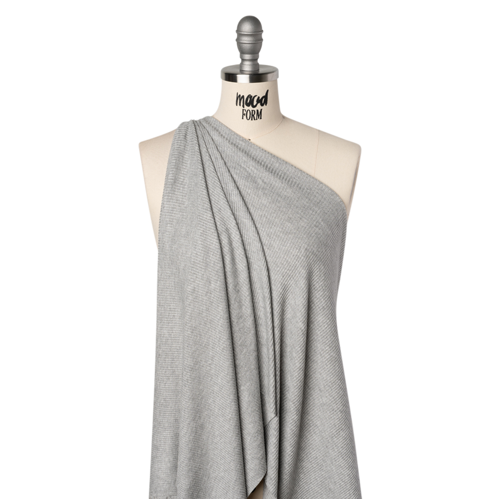 Capture your creative fog and spin it into your next masterpiece with this Heather Gray Brushed Cozy Stretch Viscose 2x2 Rib Knit—featuring a soft, fuzzy hand and supple drape.Suggested Projects: Cardigans, Tops, Skirts, LoungewearContent: 96% Viscose, 4% ElastaneStretch: 100% Weftwise, 75% WarpwiseOpacity: OpaqueEmbrace the cozy charm of this heather gray rib knit—ideal for creating effortlessly warm layers that carry you through crisp autumn days. A fine ribbed texture meets a brushed finish, creating a luxuriously fuzzy hand that calls for cozy, comforting designs. With a supple drape and generous all-way stretch, this knit transforms effortlessly into body-hugging dresses, slinky cardigans, sleek turtlenecks, and the softest loungewear sets—perfect for crisp autumn days or relaxing nights in. Opaque, a lining isn’t necessary for most applications.