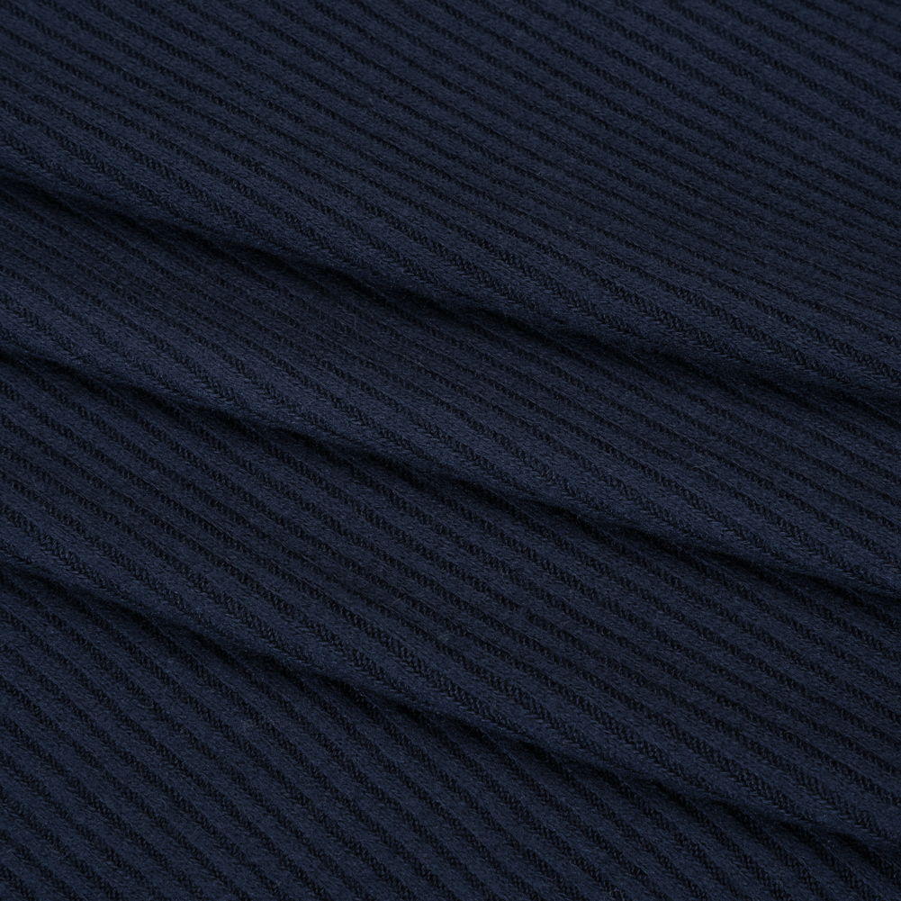 Wrap yourself in the midnight allure of this Navy Brushed Cozy Stretch Viscose 2x2 Rib Knit—featuring a soft, fuzzy hand and supple drape.Suggested Projects: Cardigans, Tops, Skirts, LoungewearContent: 96% Viscose, 4% ElastaneStretch: 100% Weftwise, 75% WarpwiseOpacity: OpaqueEmbrace the cozy charm of this navy blue rib knit—ideal for creating effortlessly warm layers that carry you through crisp autumn days. A fine ribbed texture meets a brushed finish, creating a luxuriously fuzzy hand that calls for cozy, comforting designs. With a supple drape and generous all-way stretch, this knit transforms effortlessly into body-hugging dresses, slinky cardigans, sleek turtlenecks, and the softest loungewear sets—perfect for crisp autumn days or relaxing nights in. Opaque, a lining isn’t necessary for most applications.