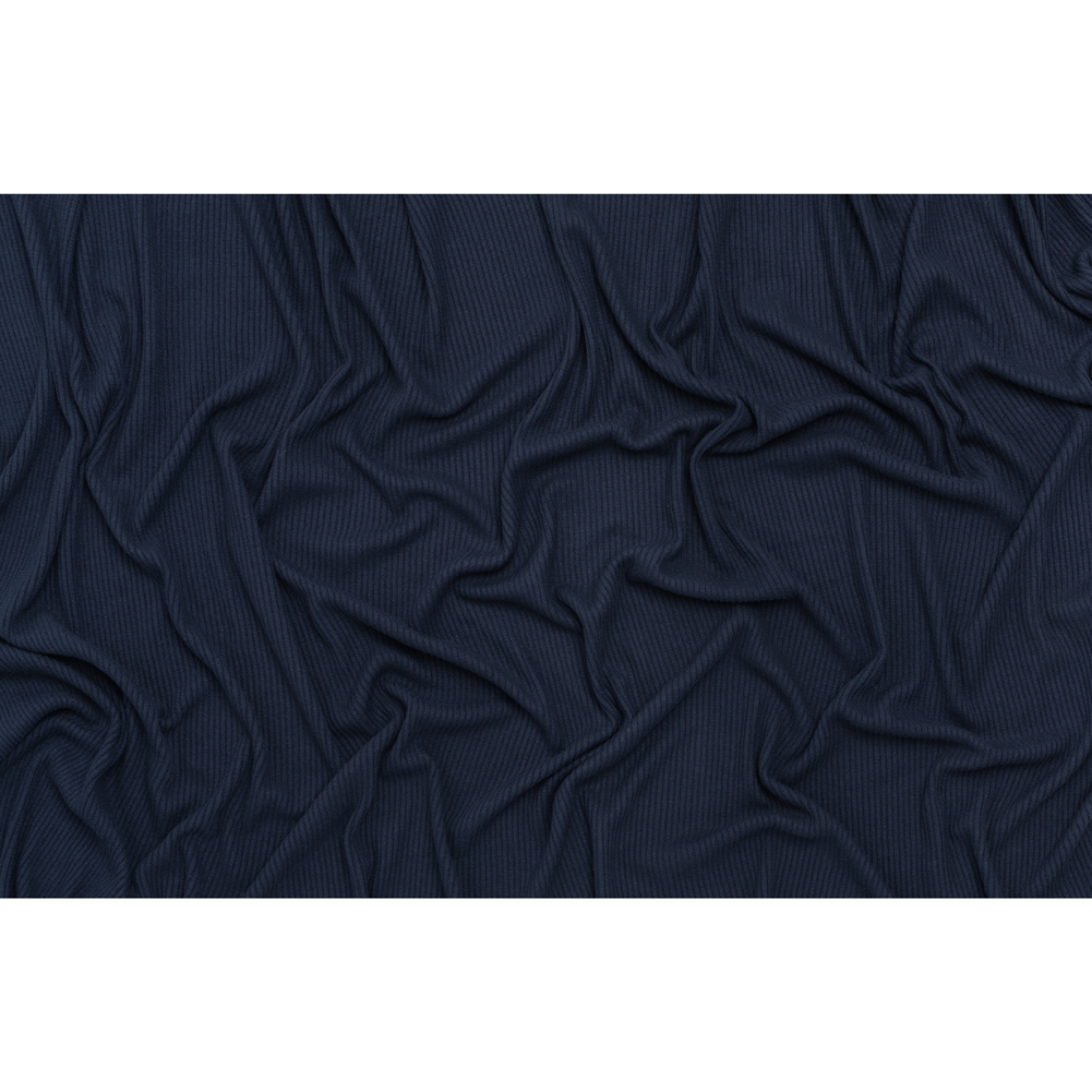 Brushed Cozy Stretch Viscose 2x2 Rib Knit - Navy - Deadstock