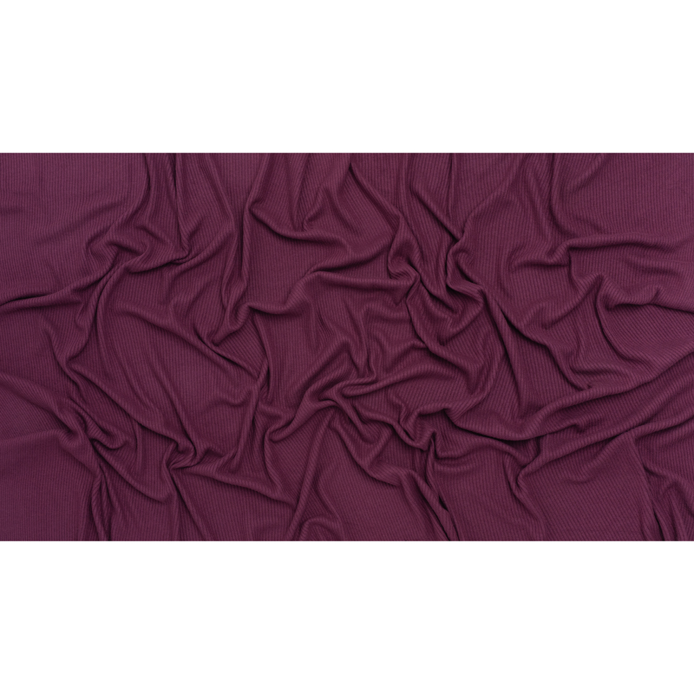 Brushed Cozy Stretch Viscose 2×2 Rib Knit – Plum – Deadstock