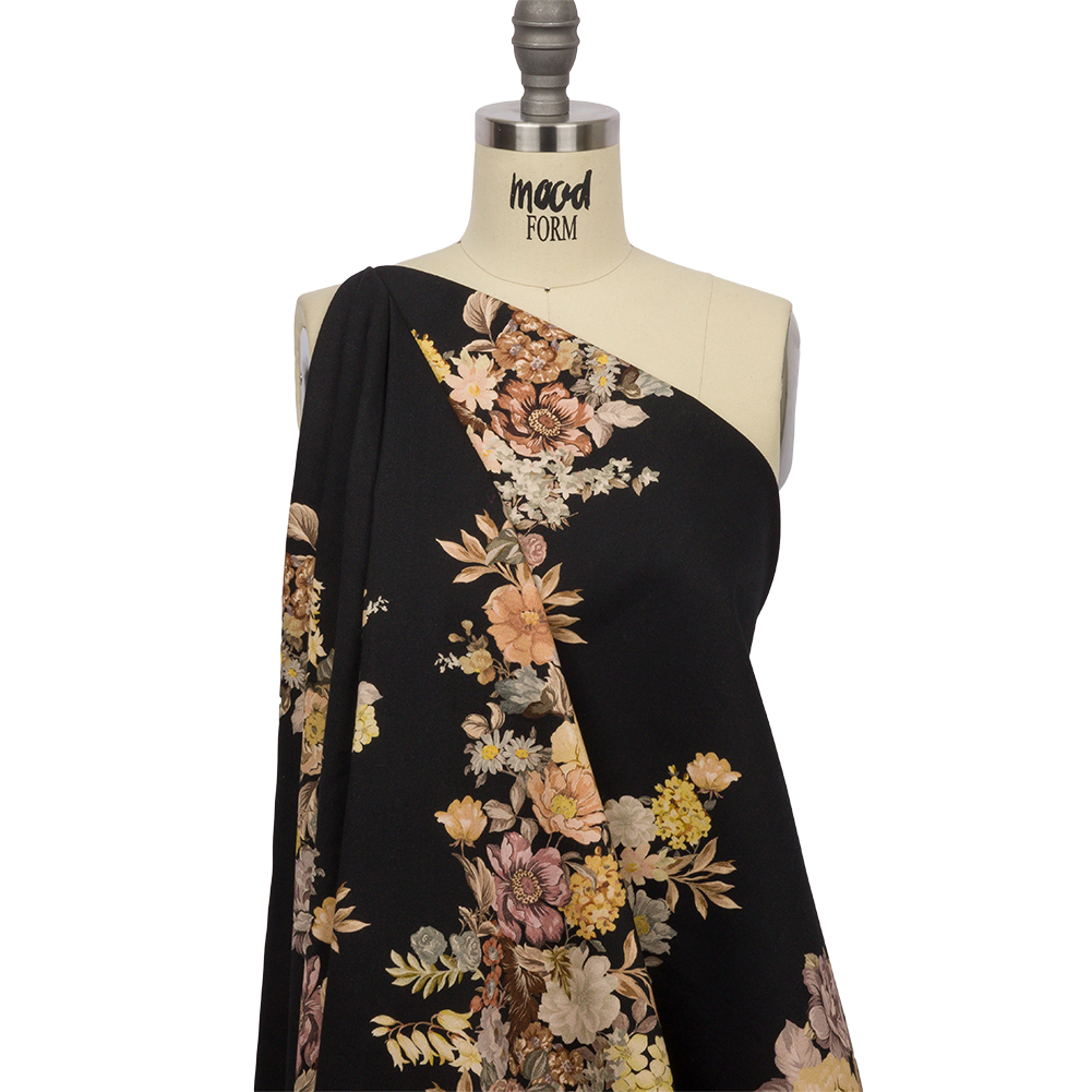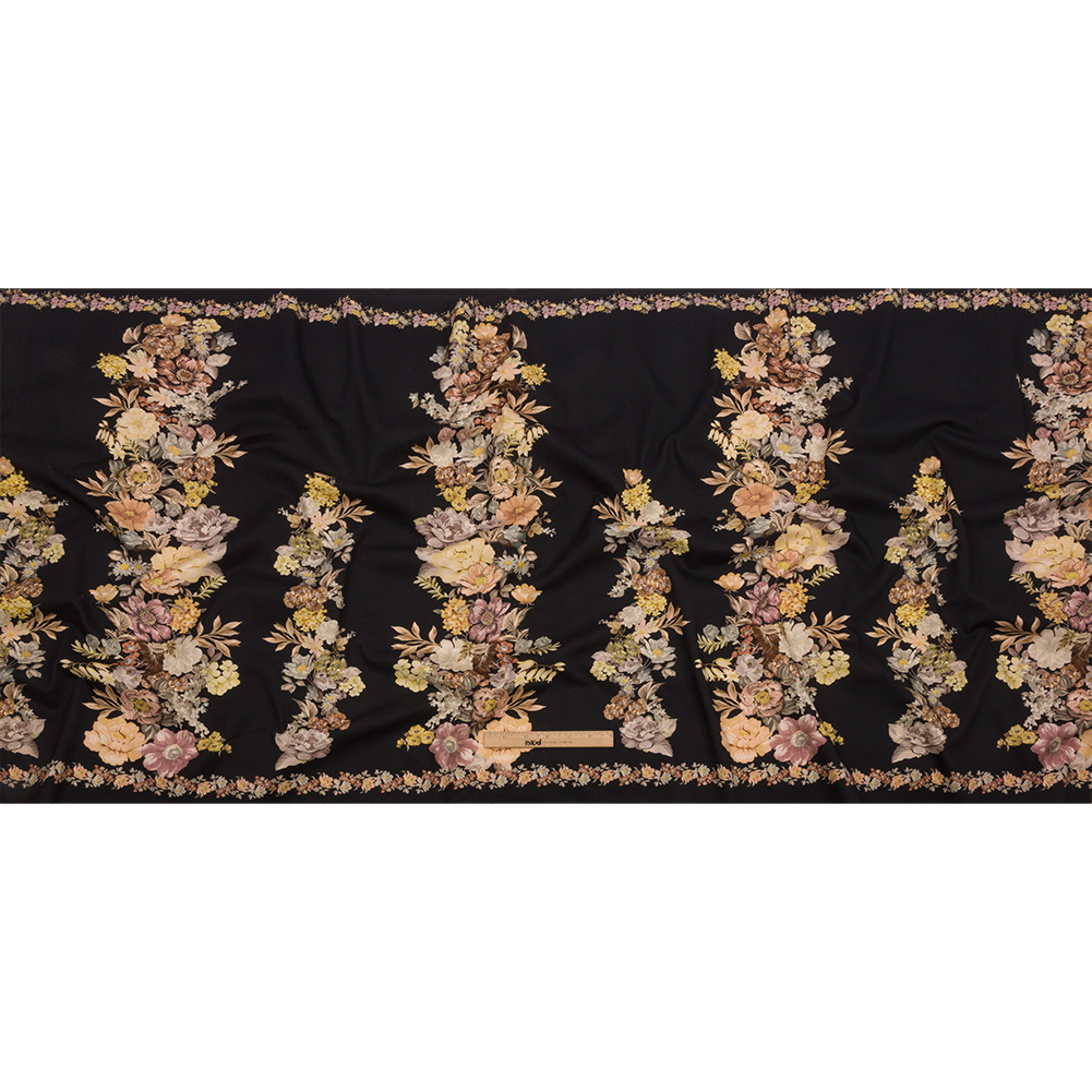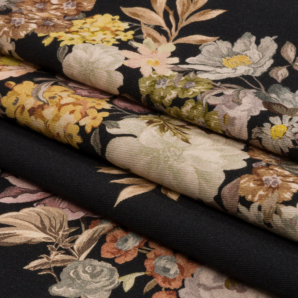 Admire the poised elegance of our Mood Exclusive Midnight Parthenon Petals Brushed Stretch Cotton Twill.