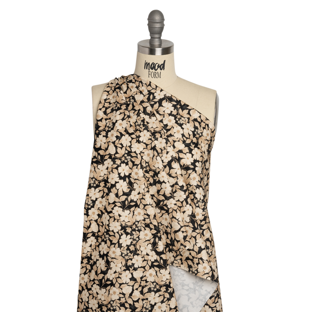 Brushed Stretch Cotton Twill Print - Black and Cream Floral - Mood Exclusive Moon-Calm Meeting