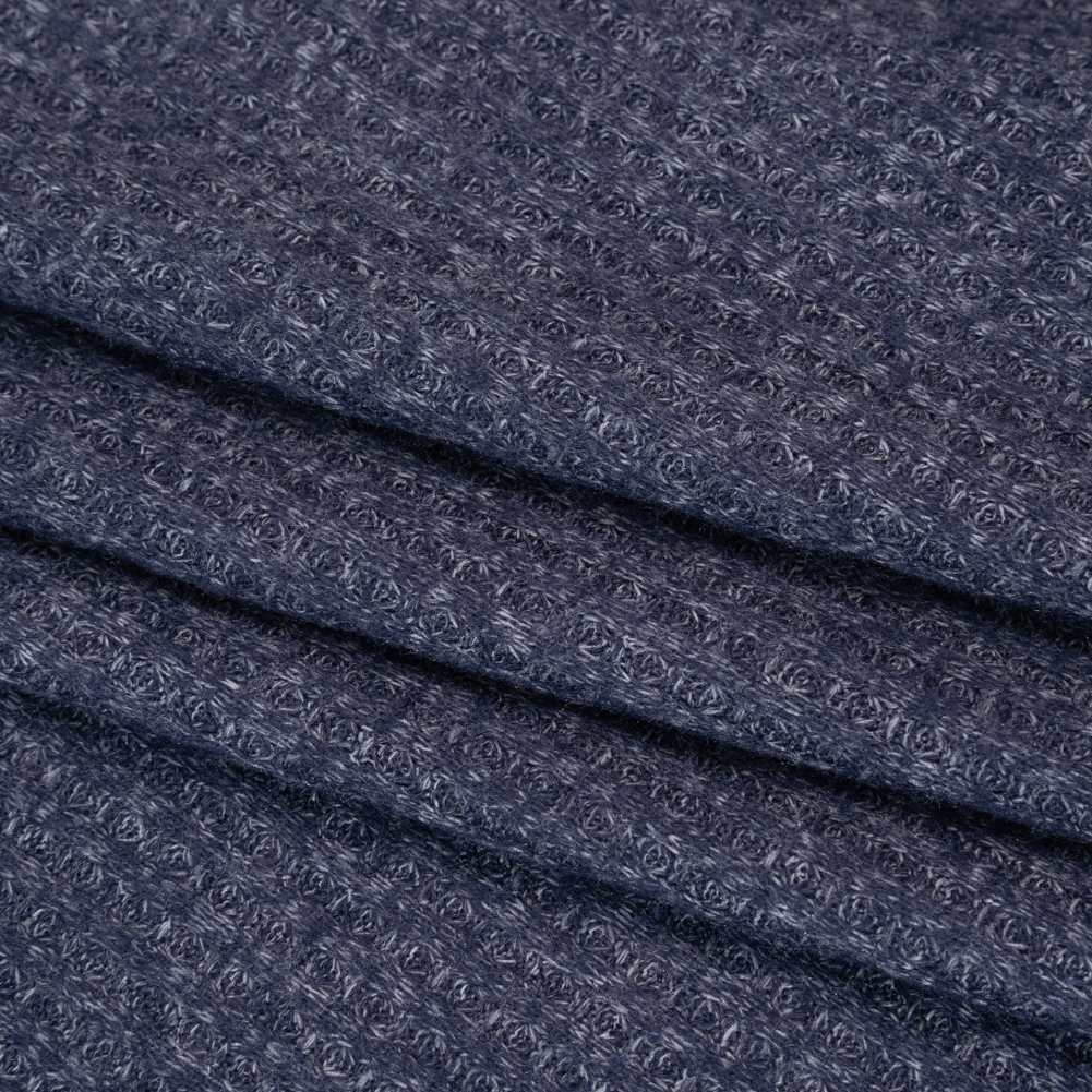 Brushed Stretch Rayon and Polyester Waffle Sweater Knit - Heathered Navy Blue - Deadstock