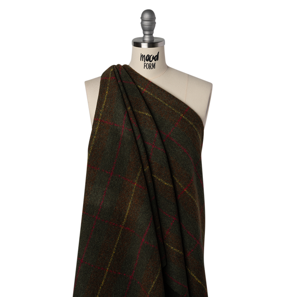 We detect many fall favorites will come out of this Plaid Brushed Tweedy Wool Boucle Coating—featuring a soft, fuzzy hand and supple drape.Suggested Projects: Coats, Jackets, Dresses, SkirtsContent: Wool, AcrylicStretch: NoneOpacity: Mostly OpaqueWoven in a plaid of green, brown, yellow, and red, this tweedy brushed wool boucle coating is made for seasons of enduring style and warmth. Its soft, fuzzy hand and supple drape lend themselves beautifully to longline wrap coats, elegant capes, chic Chanel-inspired skirt-and-jacket sets, and more. Mostly opaque, it benefits from a lining to achieve a refined, tailored finish while adding extra insulation.