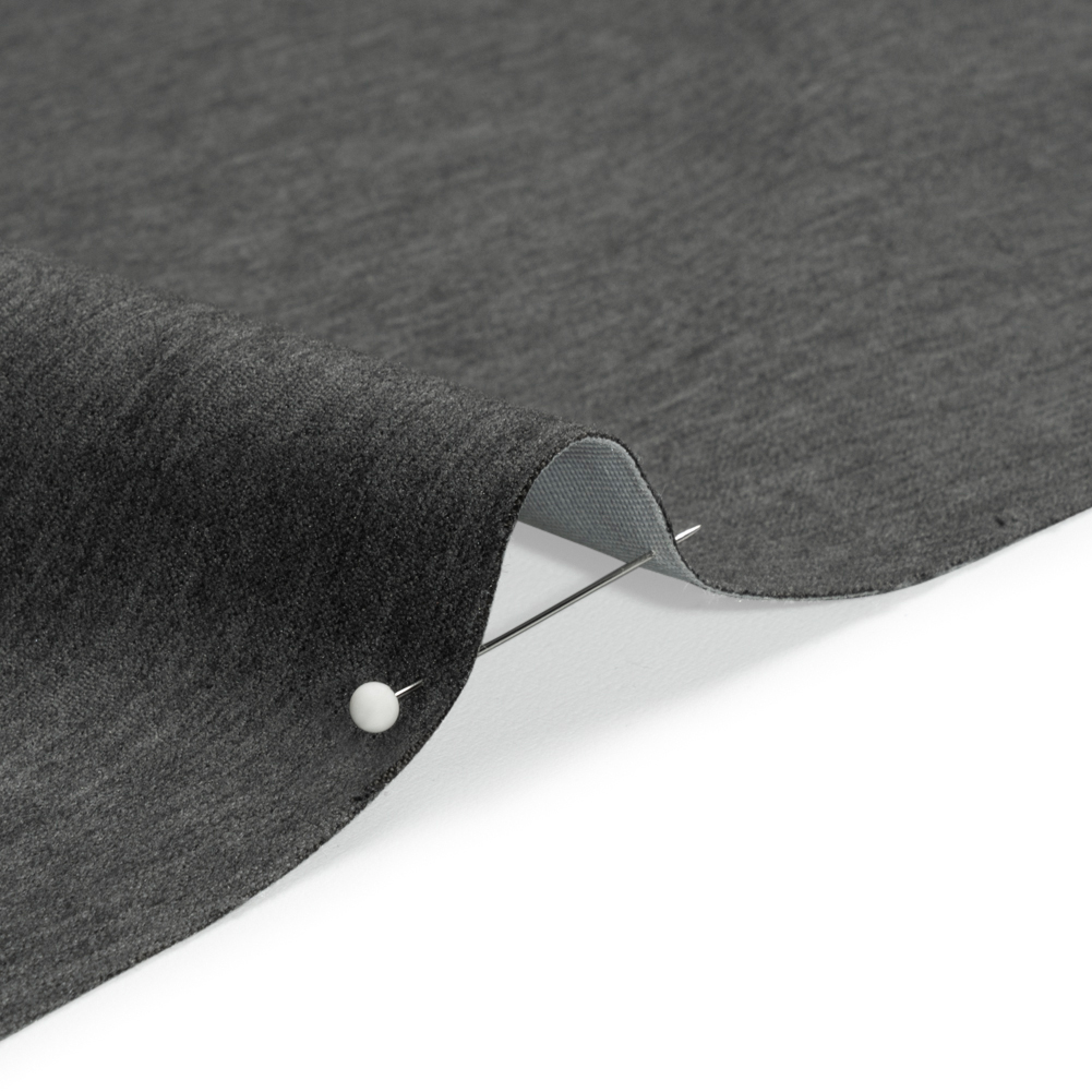 Let this Kirkley Chia Heathered Stain Repellent Brushed Upholstery Woven plant seeds of inspiration for your next upholstery project! A brushed finishing technique leaves the heathered dark gray and black face with a soft, plush-like hand. It is flame resistant, stain repellant, and chaotic home approved—and, backed by a sleek white woven, this durable fabric easily drapes over the curves and crevices of any and all furniture.Create upholstery that you don’t have to worry about; from messy mornings on breakfast stools to boozy hangouts on sofas to playtime forts with chair cushions, you can count on this fabric to provide a comfortable, stylish, and long-lasting seating experience.