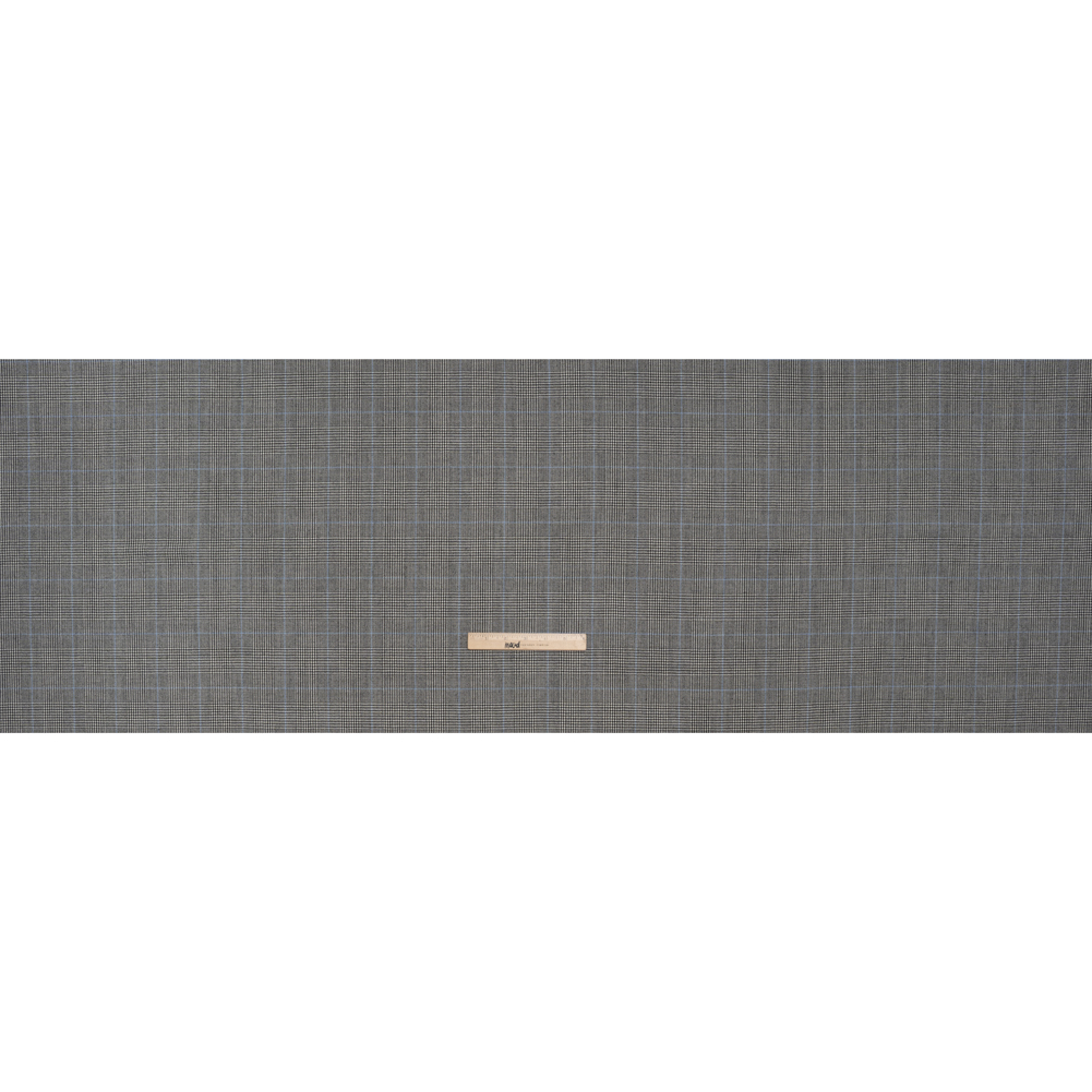Brushed Virgin Merino Wool Twill - Black, White and Sky Blue Glen Plaid
