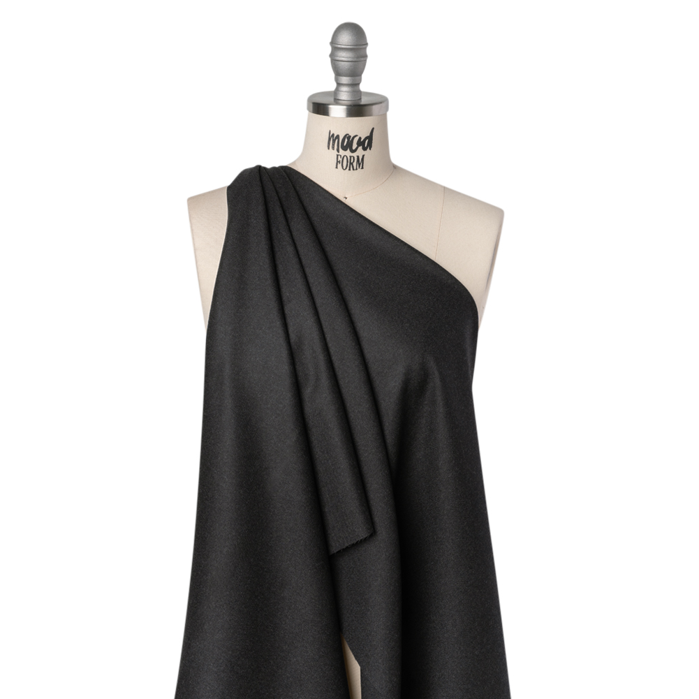 Though the weather may be cold, your fashions are sure to stay hot with this Heathered Anthracite Gray Brushed Virgin Wool Twill—featuring a soft, fuzzy hand and supple drape.Suggested Projects: Blazers, Dresses, Skirts, PantsContent: 100% Virgin WoolStretch: NoneOpacity: OpaqueKeep yourself, and your wardrobe, hot with this heathered anthracite gray twill. Seamlessly move from workday to weekend with this virgin wool twill’s soft, fuzzy hand—courtesy of a brushed finish—and supple drape that balances durability with effortless elegance. Perfect for both structured and flowing designs, it’s ideal for tailored blazers, chic boat-neck dresses, A-line midi skirts, straight-leg trousers, and more. Fully opaque, adding a lining enhances warmth, supports dimensional stability, and helps protect fine yarns from fraying at the seams.
