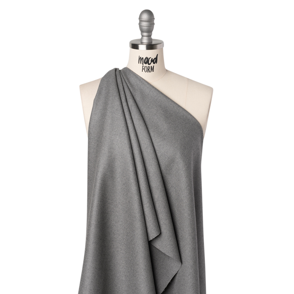 Lean in to classic silhouettes and inspirations when working with this Heathered Light Gray Brushed Virgin Wool Twill—featuring a soft, fuzzy hand and supple drape.Suggested Projects: Blazers, Dresses, Skirts, PantsContent: 100% Virgin WoolStretch: NoneOpacity: OpaqueThis heathered light gray twill offers a perfect harmony of modern and classic tones, with a soft, inviting hand. Seamlessly move from workday to weekend with this virgin wool twill’s soft, fuzzy hand—courtesy of a brushed finish—and supple drape that balances durability with effortless elegance. Perfect for both structured and flowing designs, it’s ideal for tailored blazers, chic boat-neck dresses, A-line midi skirts, straight-leg trousers, and more. Fully opaque, adding a lining enhances warmth, supports dimensional stability, and helps protect fine yarns from fraying at the seams.