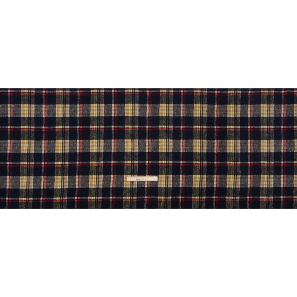 Brushed Wool Blend Twill - Navy, Red and Lemon Yellow Plaid - Deadstock