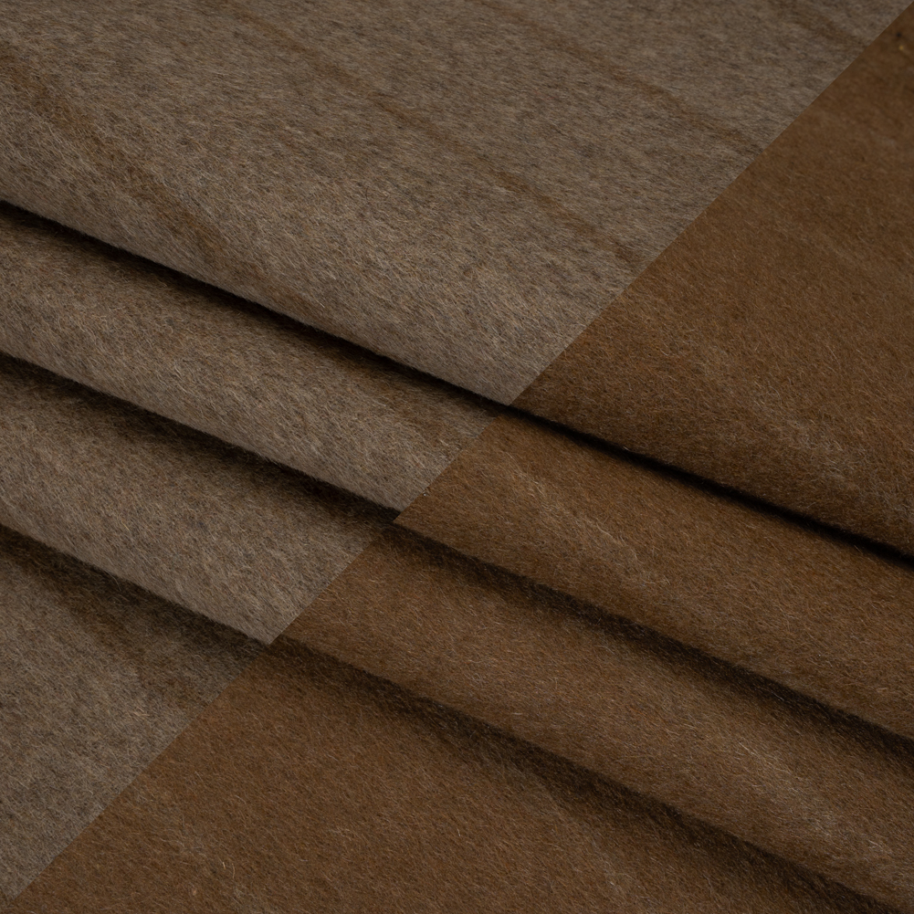 You won’t want to s-taupe touching this Taupe and Warm Brown Chalk Stripes Brushed Wool Double Cloth Coating. With an irresistibly soft hand and supple drape, this fabric makes it easy to wrap yourself in comfort—perfect for creating the coziest garments to live in.Suggested Projects: Coats, Jackets, Dresses, SkirtsContent: WoolStretch: NoneOpacity: OpaqueWarm brown chalk stripes dash across a taupe ground—reversed in palette on the opposite side—giving this ultra-soft brushed wool double-cloth coating a versatile edge that blends classic sophistication with cozy warmth. With its pattern mirrored on both sides, the fabric is not only fully reversible but also built for lasting wear, offering a supple yet weighted drape that lends itself beautifully to coats, capes, and timeless outerwear. Though opaque, it pairs best with a lining for a polished finish in tailored designs.