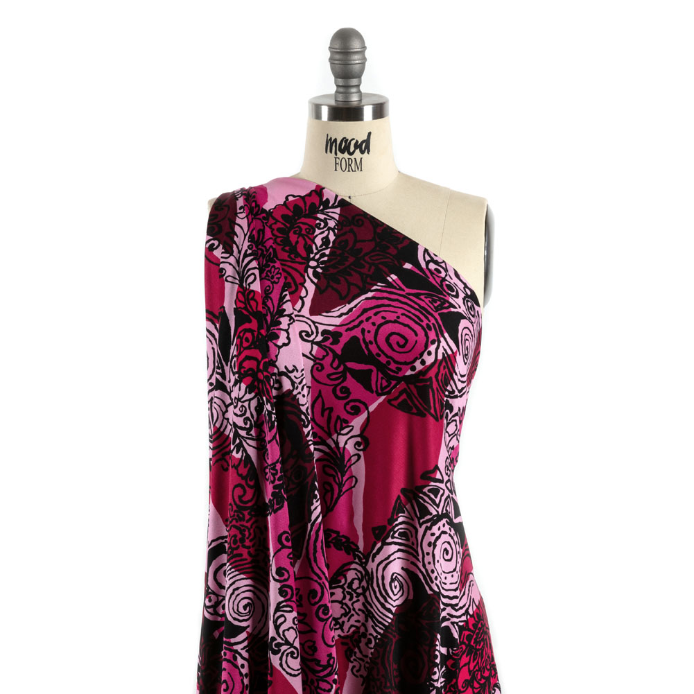 Bubblegum, Fuchsia and Wine Diamonds and Floral Outlines Silk Jersey
