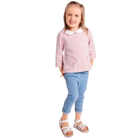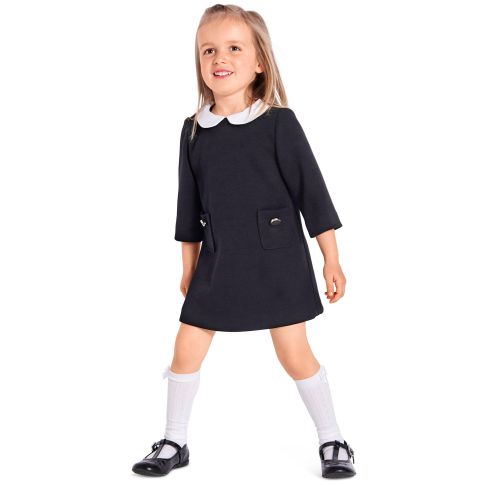 This set includes a lovely, classic dress with a collar and a sweater. The dress features practical pockets and mid-length sleeves, making it perfect for your daughter’s school outfit. The sweater also has pockets and pairs well with jeans.