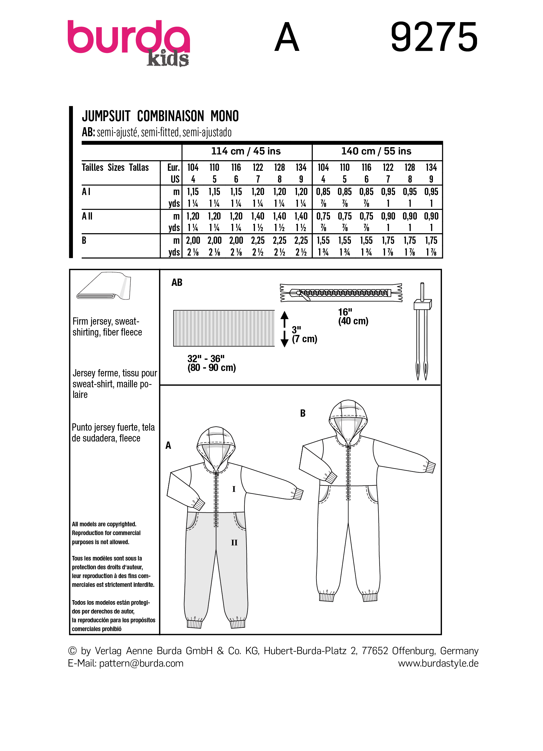 burda kids sewing pattern Kids Onesies #9275