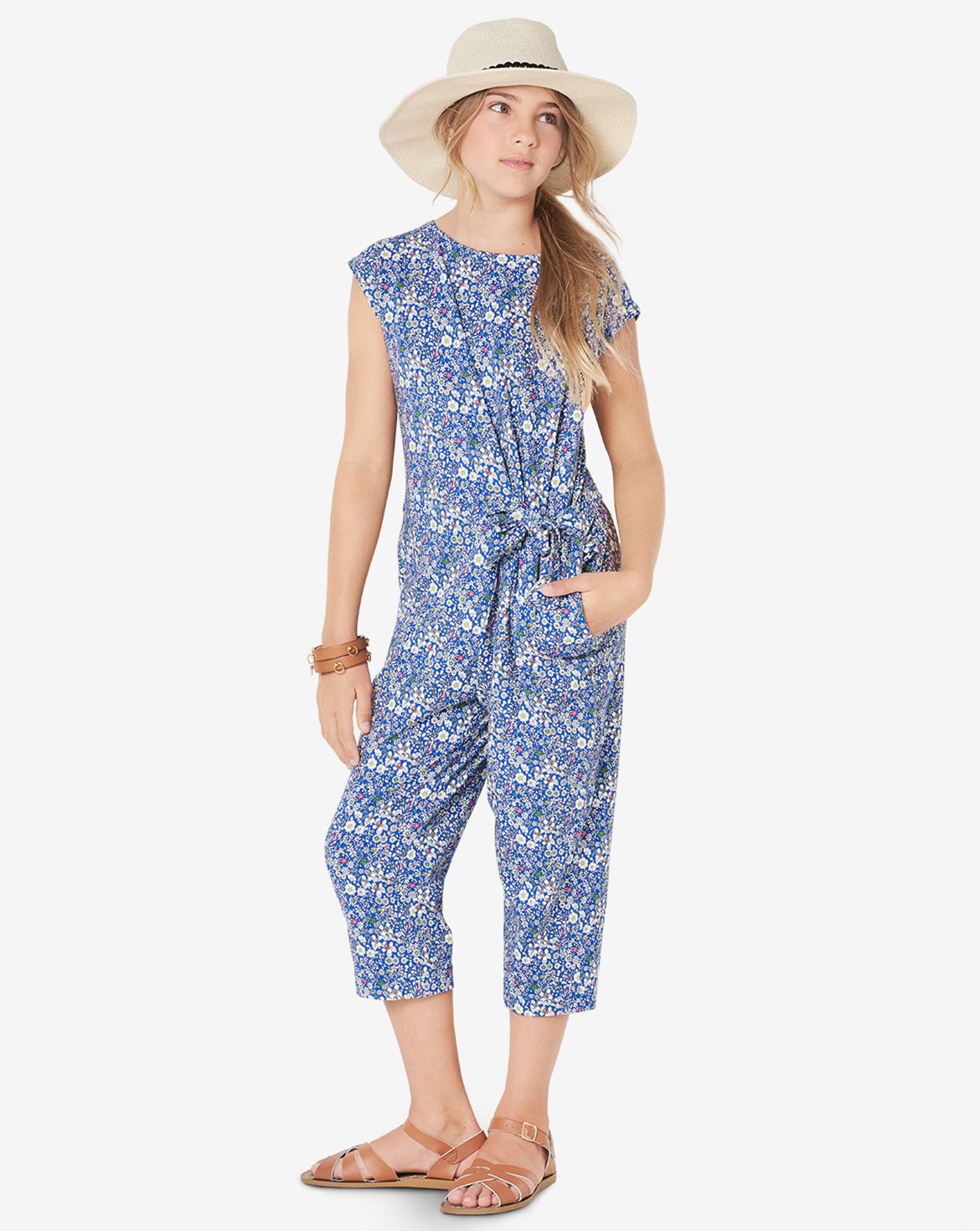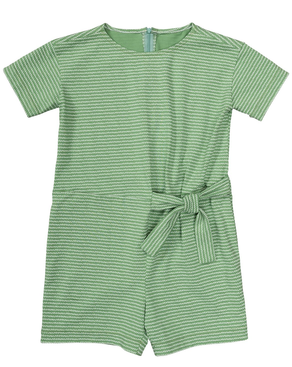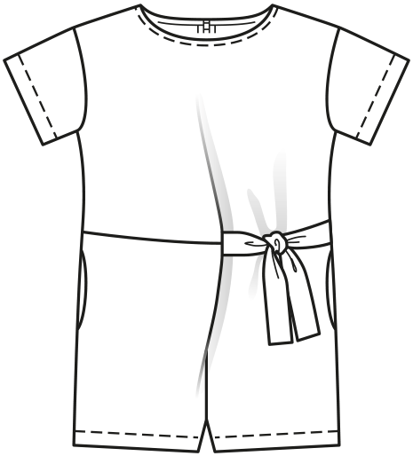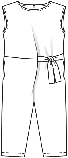 This girls summer jumpsuit pattern for fashion-conscious girls has seam pockets in the side seams and fastens with a zipper. Asymmetrical tie straps give the jumpsuit a flattering fit.