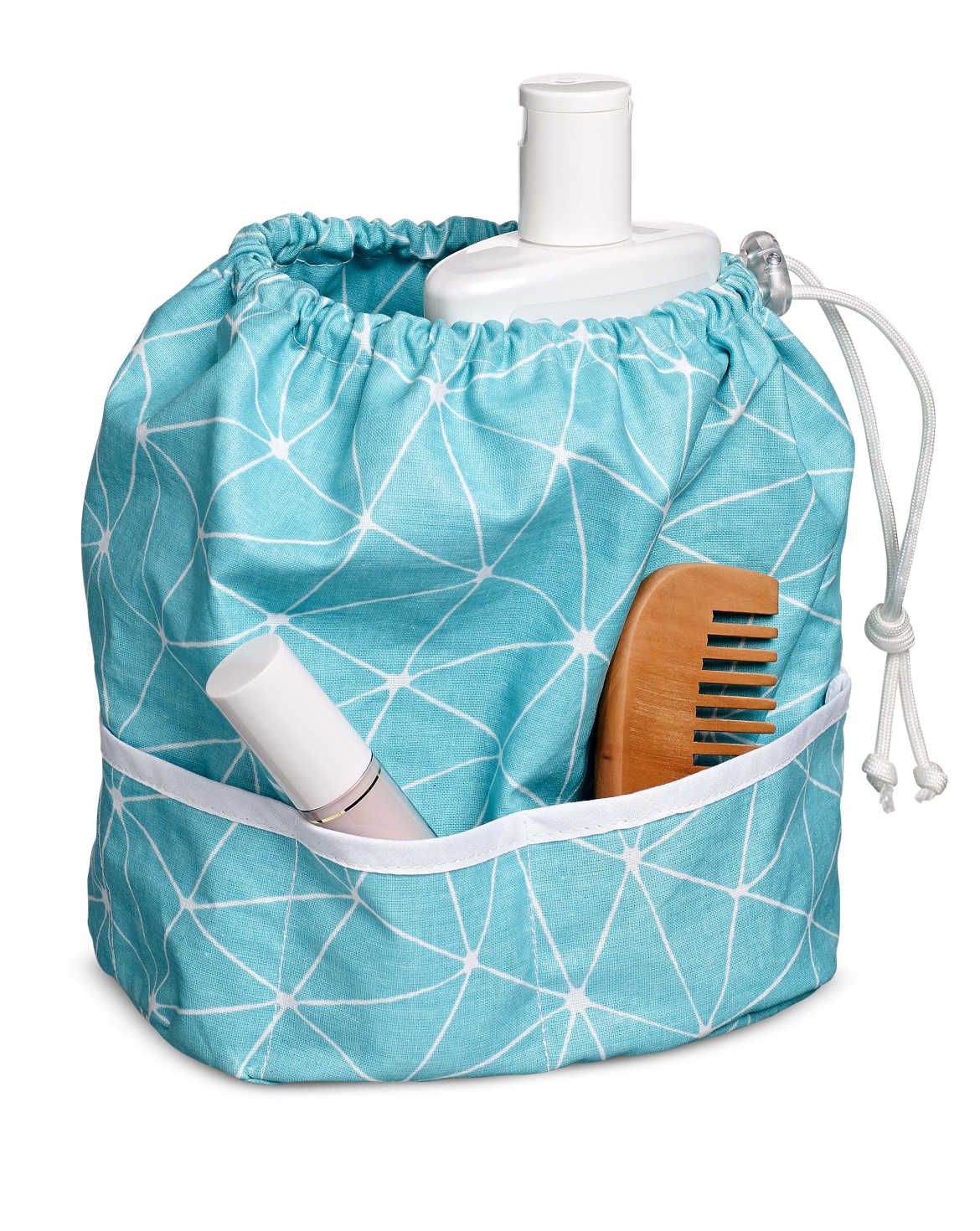This bathroom storage pattern includes three practical and decorative utensil holders, not only for the bathroom but also useful when traveling. Includes a wrap mat, a pretty bag, and a classic toiletries bag.
