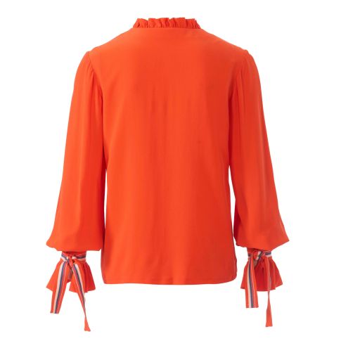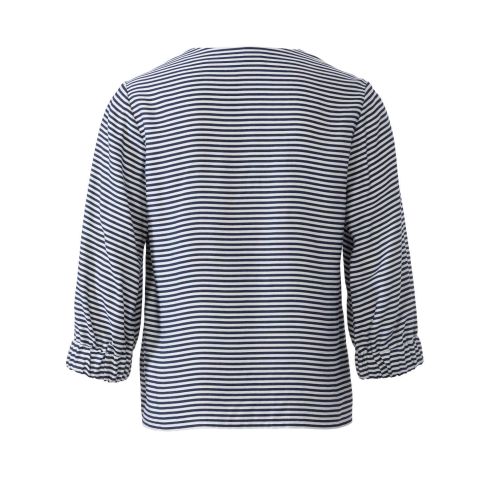 Stylish blouses for many occasions. A features playful ruffle details on the neckline and sleeves, while B has a V-neck and 3/4-length sleeves with elastic cuffs.