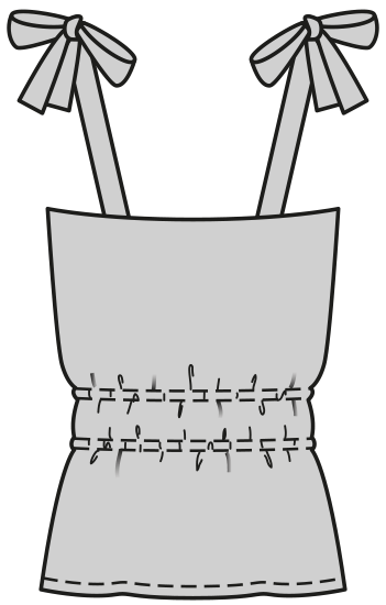 The epitome of summer: these easy-to-sew tops and the short spaghetti-strap dress. The straps, tied on the shoulders, cover bra or bikini straps. Top B is shaped with elastic smocking at the waist.