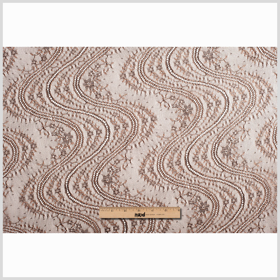 From Carolina Herrera, a beautiful metallic chantilly lace with a floral design.