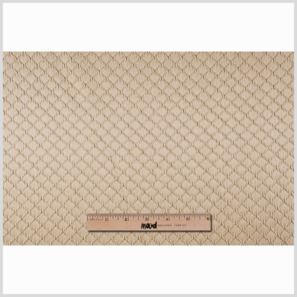 Polyester satin home decor fabric with a grid of raised diamonds.