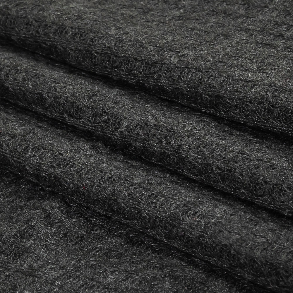 Charcoal Heathered Polyester Waffle Sweater Knit