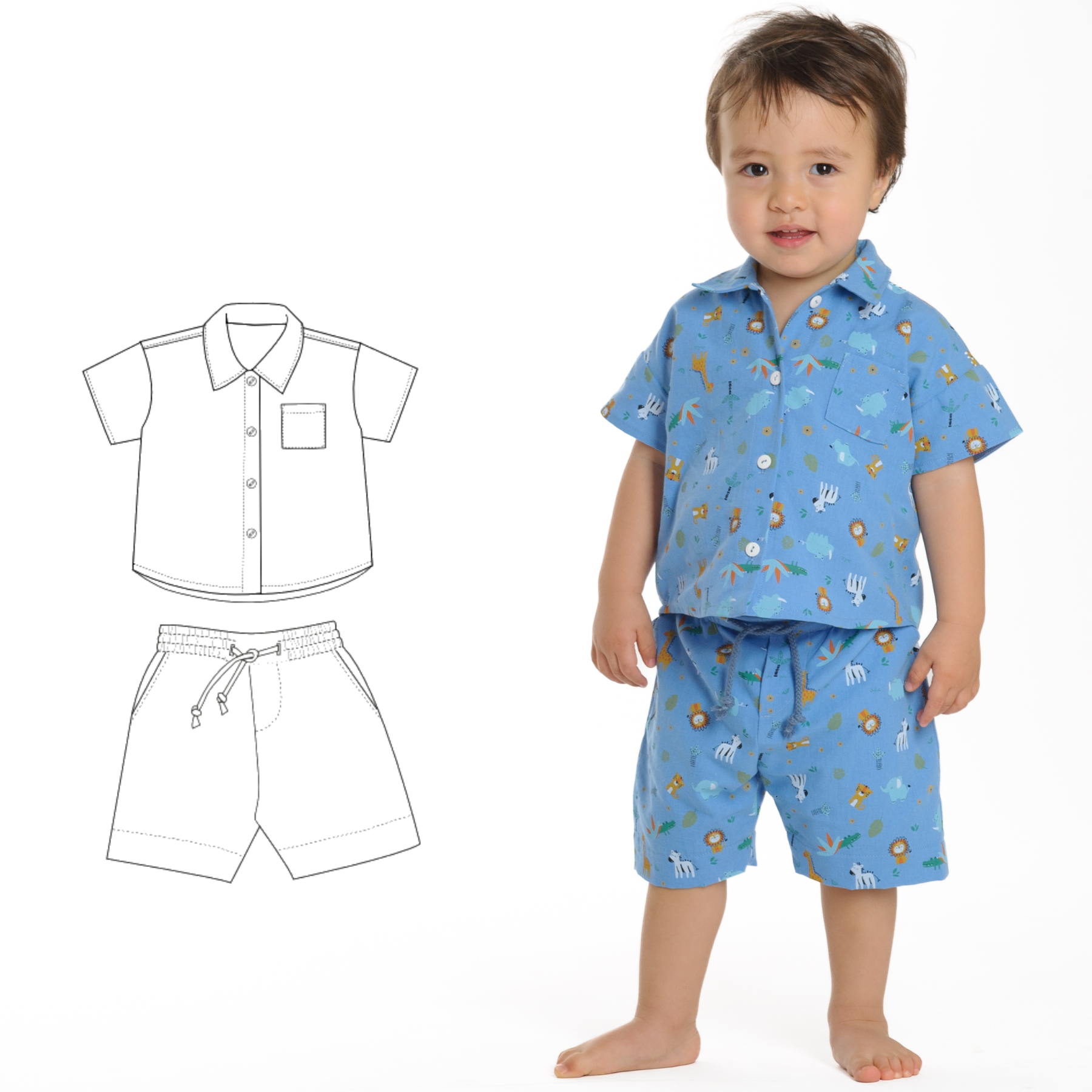 Create stylish, comfortable outfits with the "Tom+Noah" sewing pattern eBook! Perfect for babies, toddlers, and young boys, this versatile PDF pattern includes a classic button-up shirt and elastic-waist pants – ideal for any season.