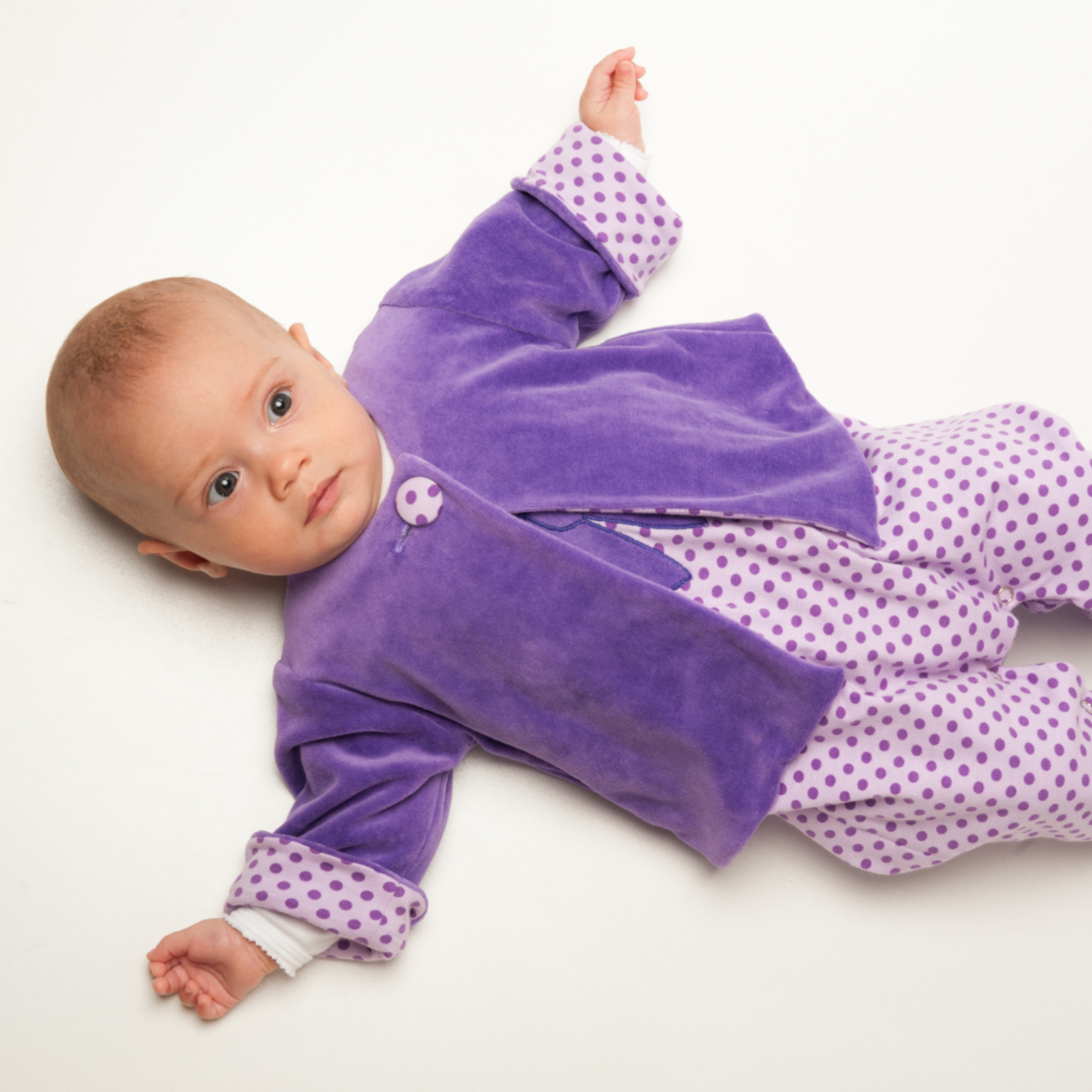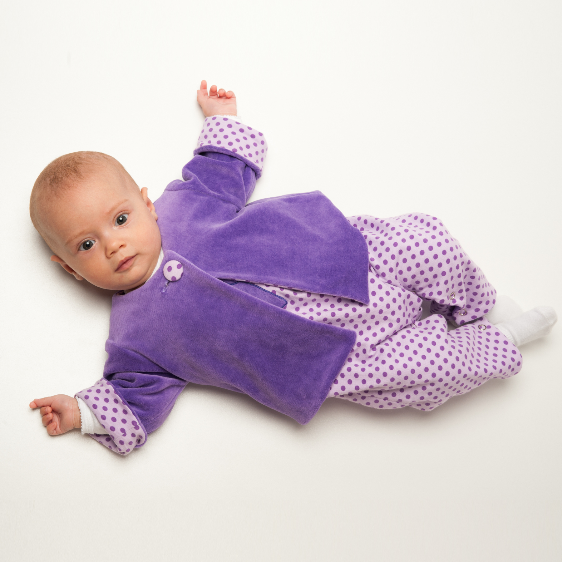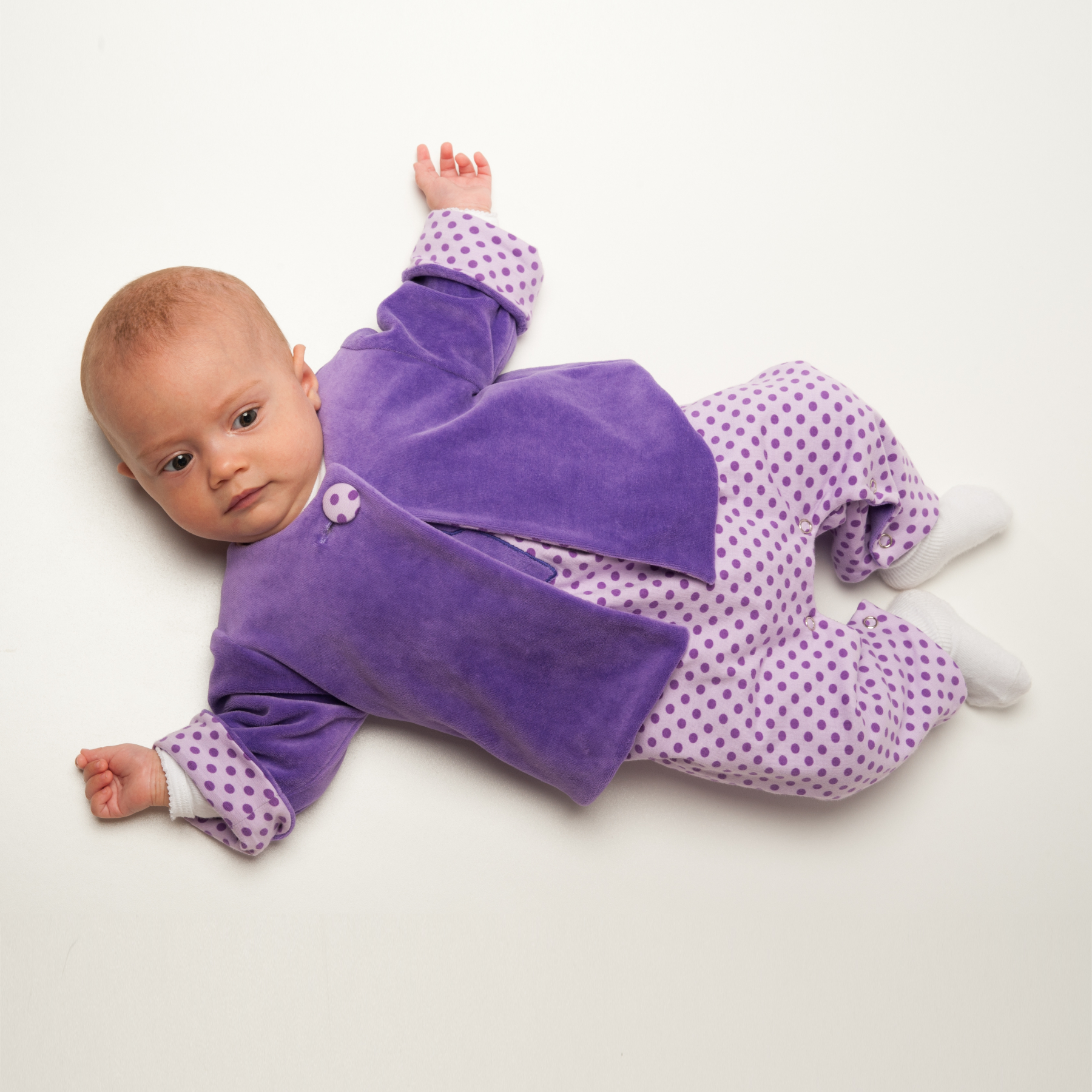 The FILIPPA baby and toddler jacket Jacket Sewing Pattern PDF is perfect for creating a warm, lined jacket with charming button details and sleeve cuffs. Designed for boys and girls, this versatile jacket pairs beautifully with baby overalls like the Plinio set.